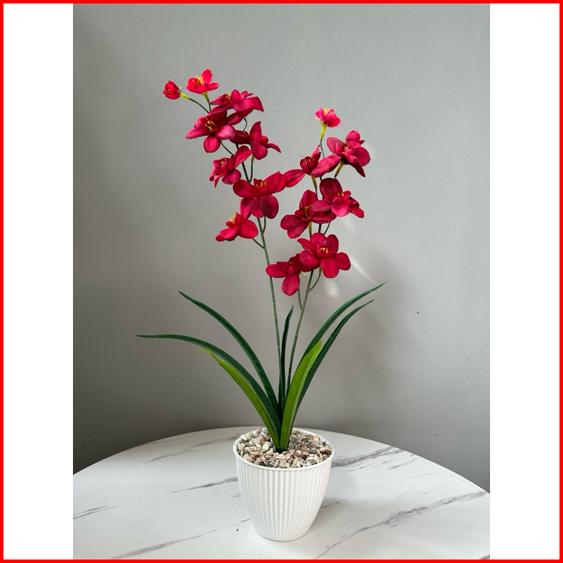 Bunga Artificial Anggrek Cymbidium Pot Kerang