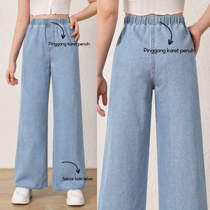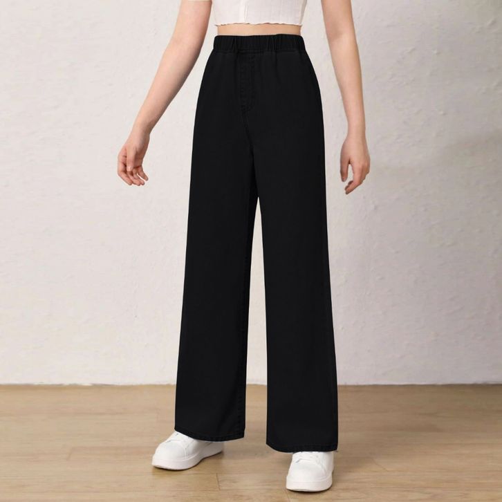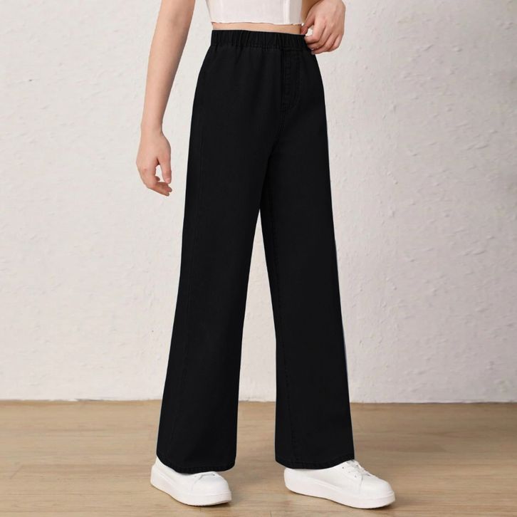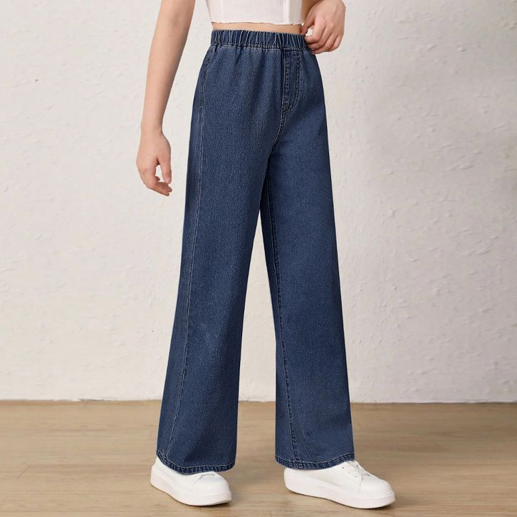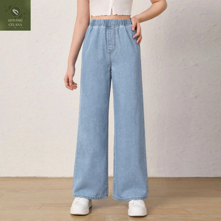 Celana Jeans Wanita Terbaru Elastic Waistband Casual Solid Color Straight Ladies Baggy Denim Pants