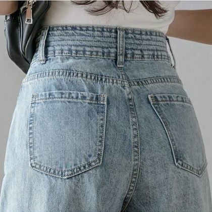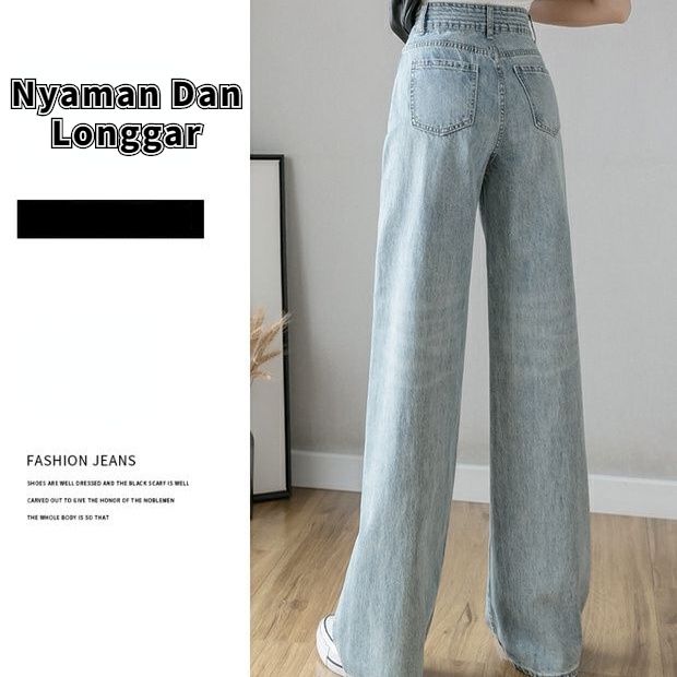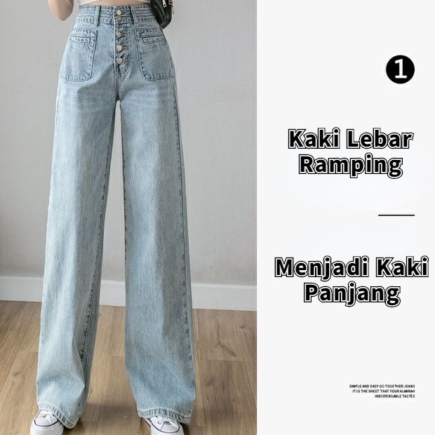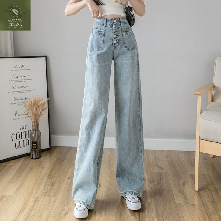 Celana Denim Kaki Lebar Pinggang Tinggi Wanita Premium
