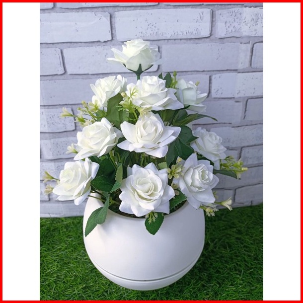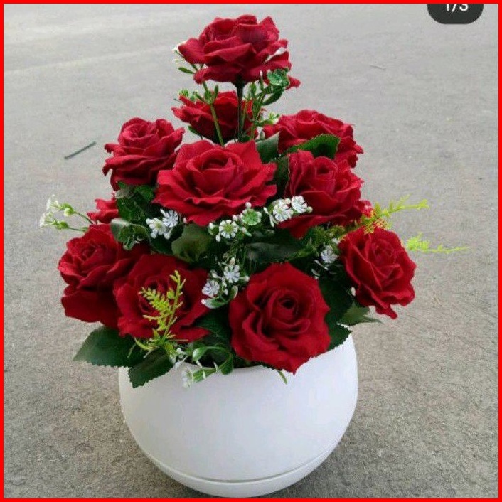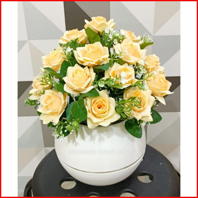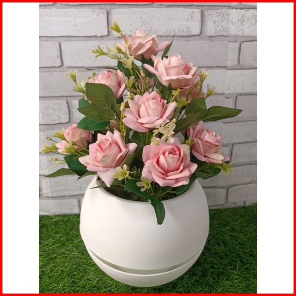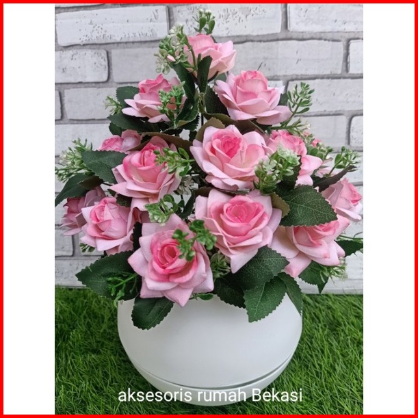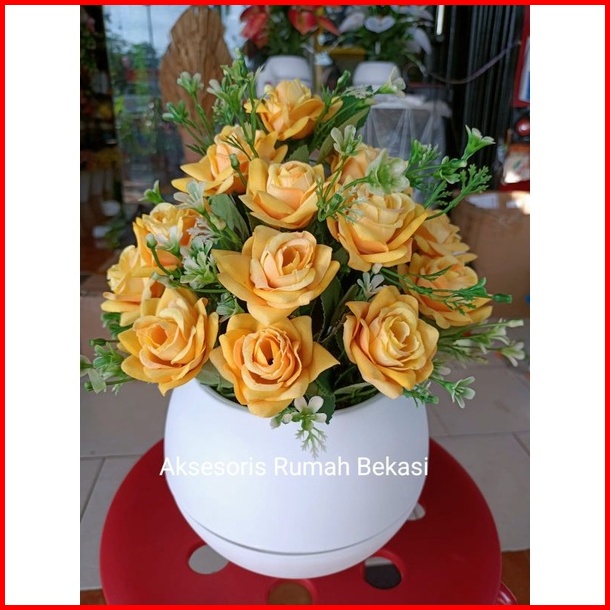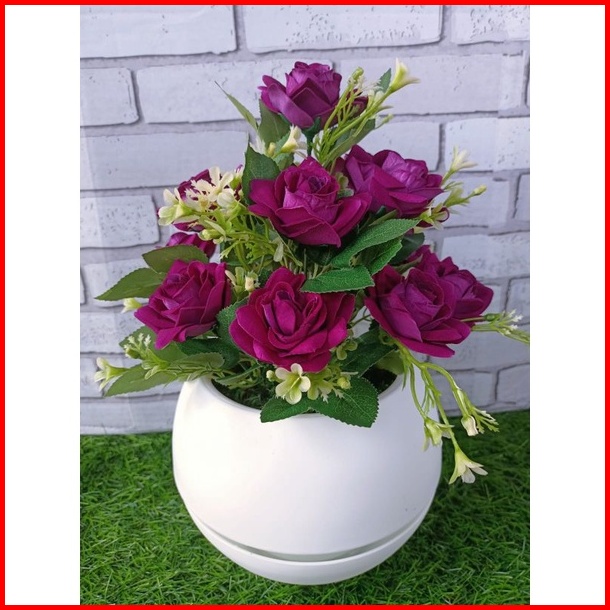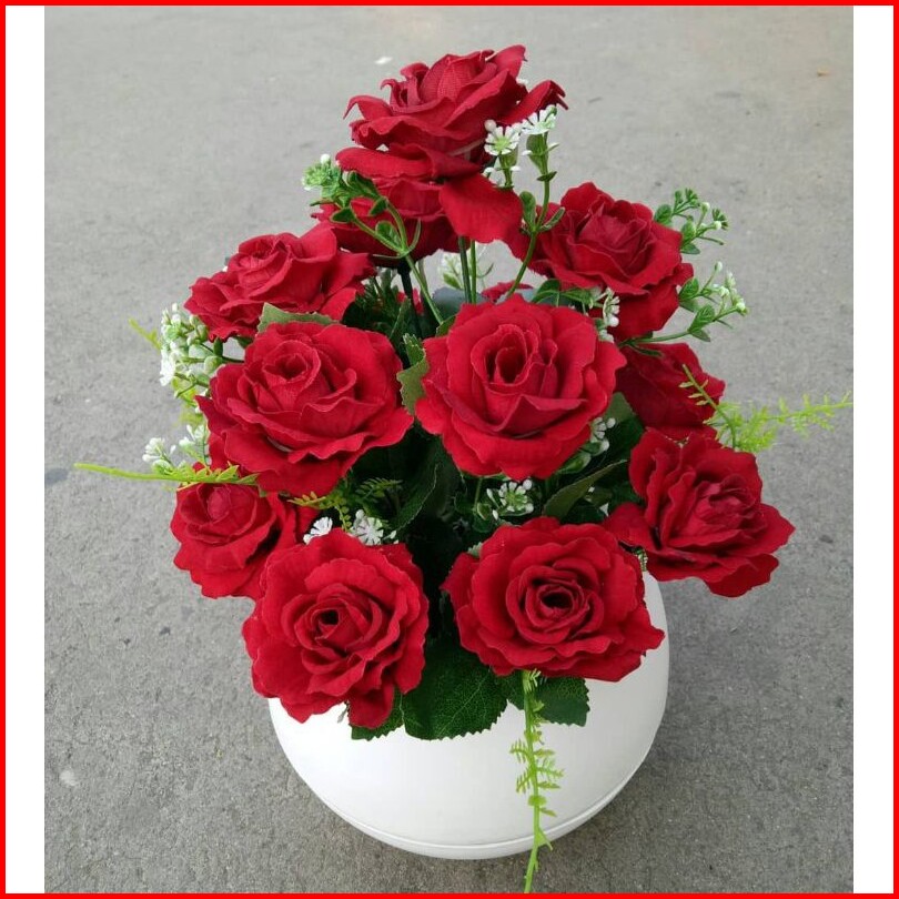 Buket Bunga Mawar Beludru Artificial Rose Beludru Artificial Dengan Vas Bola Plastik