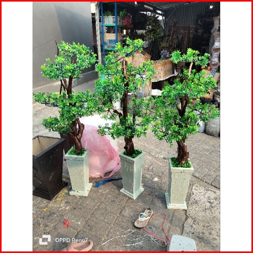 Tinggi 140cm Lengkap Vas Bebatuan Pohon Bunga Hias Semanggi Pohon Bunga Hias Serut Pohon Bunga Hias Artificial Plastik I