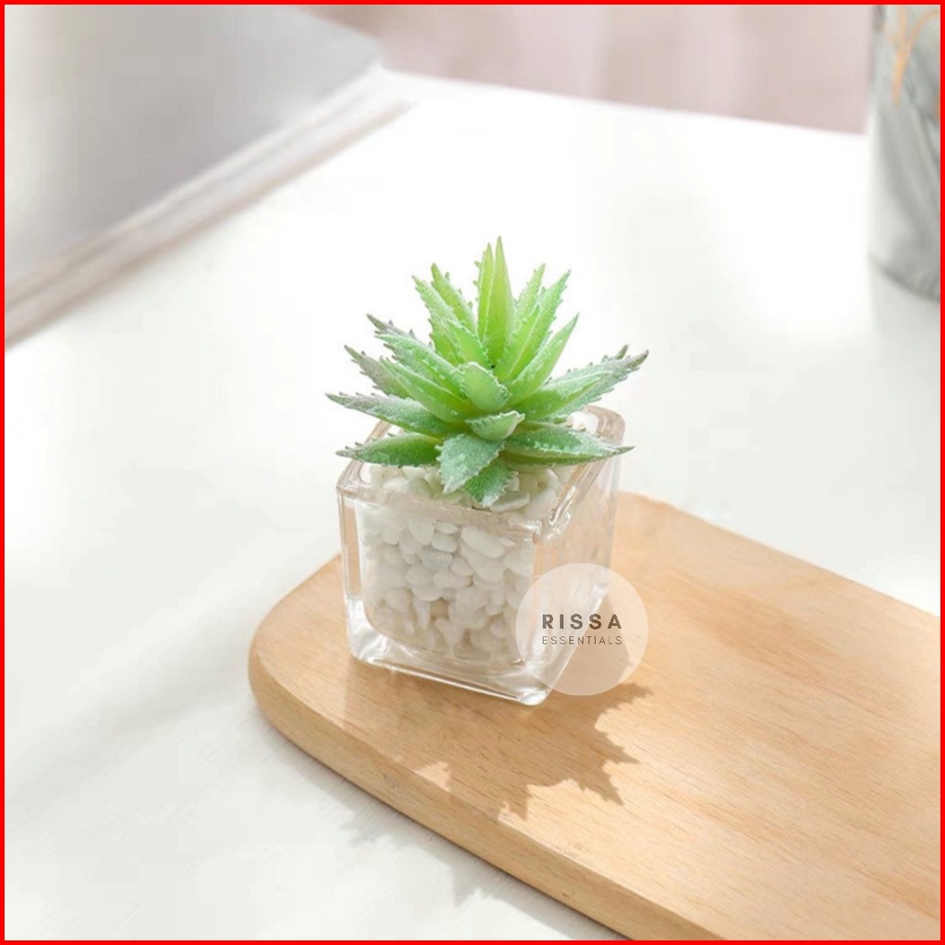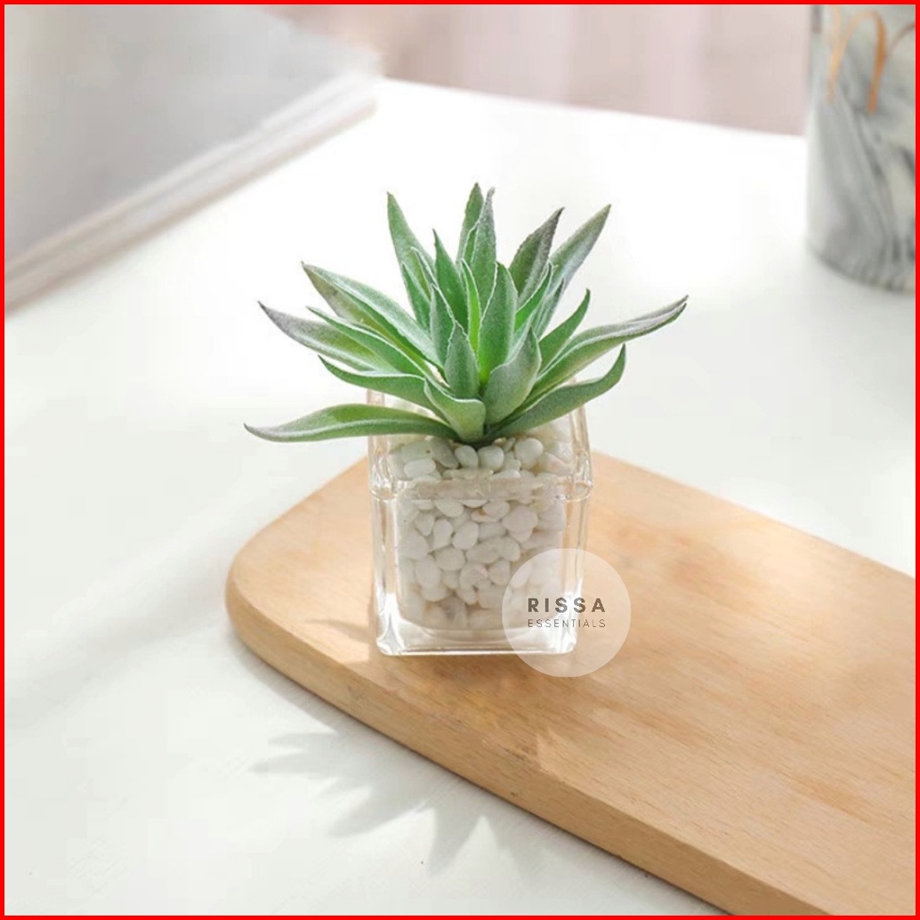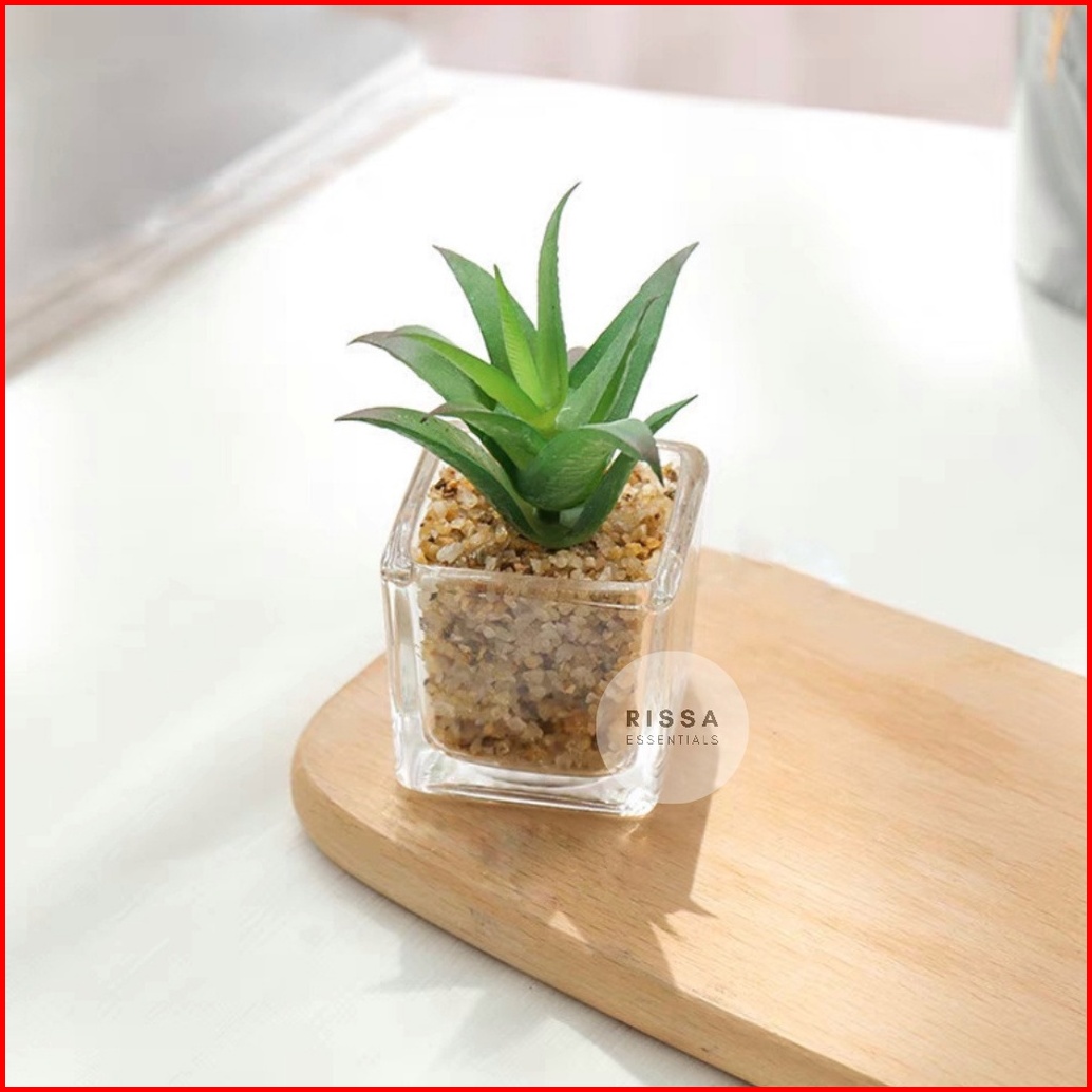 Rissa Mini Kaktus Palsu Pot Transparan Cactus Kecil Tanaman Palsu Dekorasi Tanaman Bunga Sintetis Dekorasi Rumah Propert