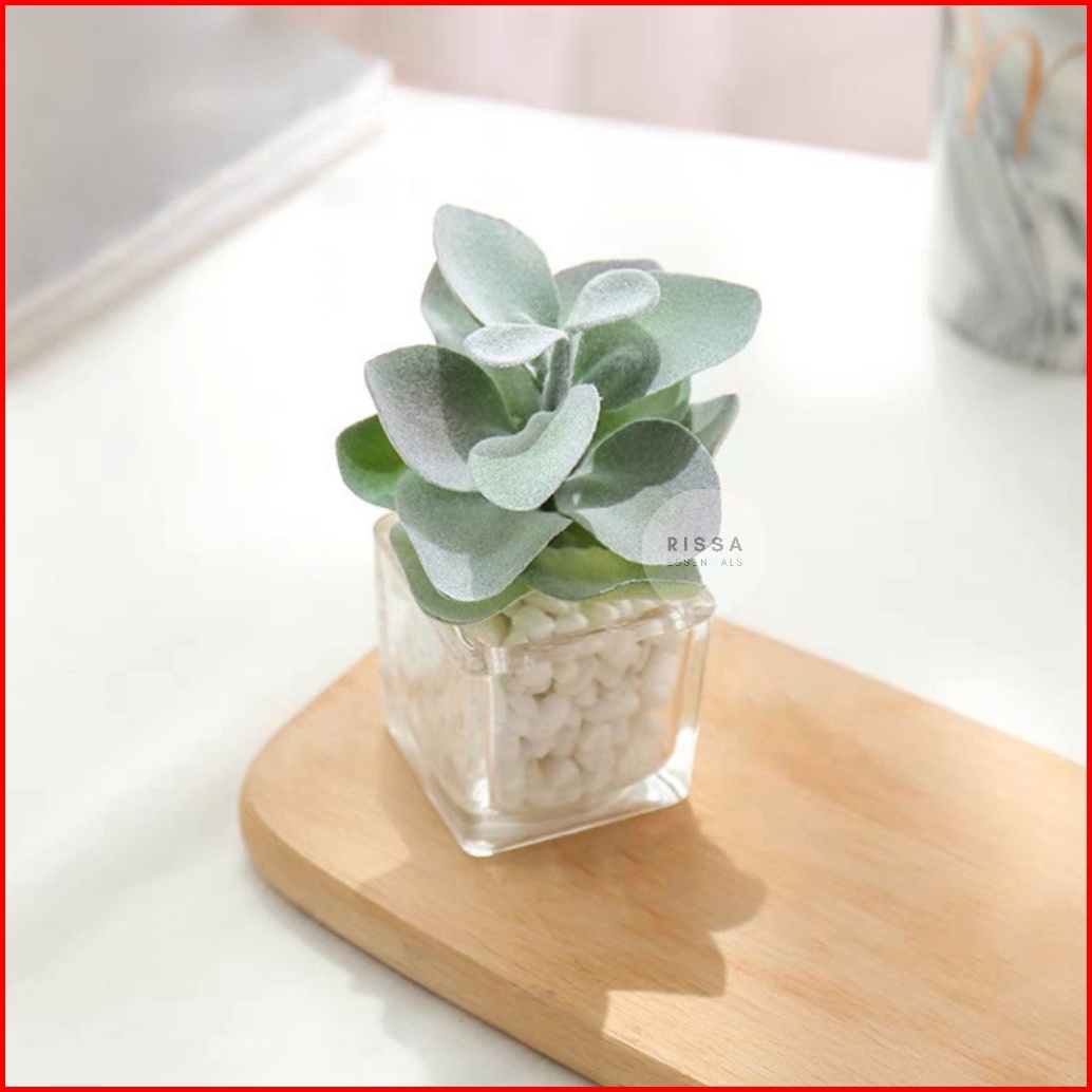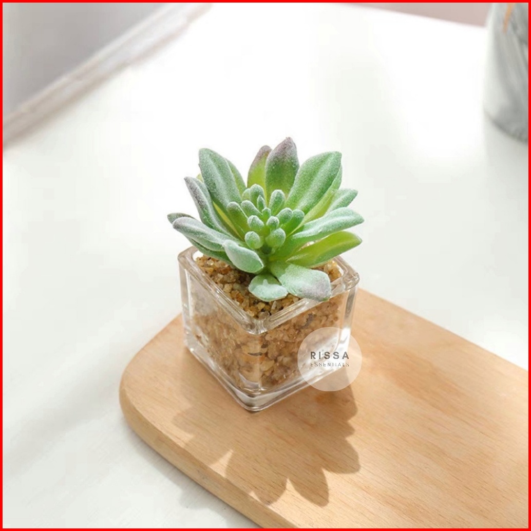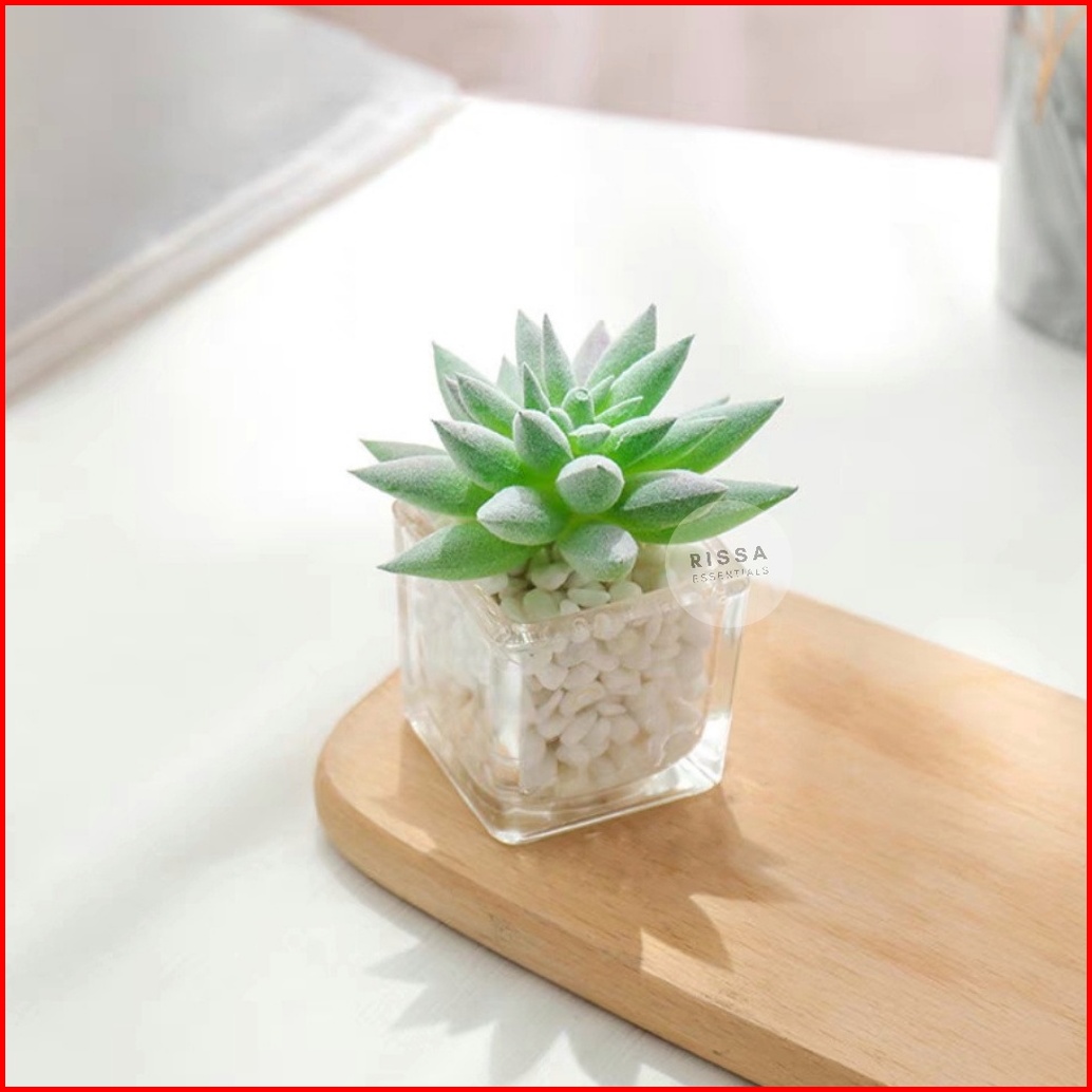 Rissa Mini Kaktus Palsu Pot Transparan Cactus Kecil Tanaman Palsu Dekorasi Tanaman Bunga Sintetis Dekorasi Rumah Propert
