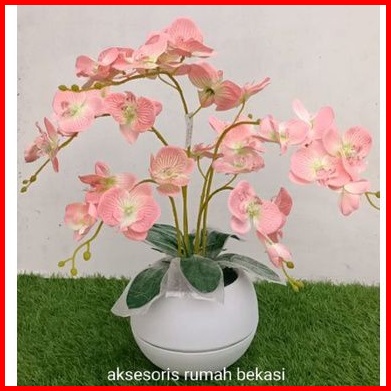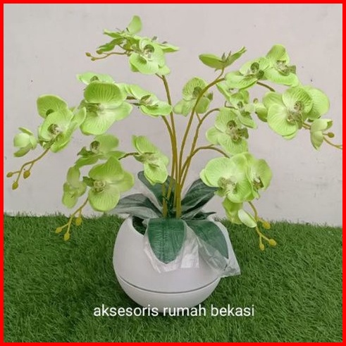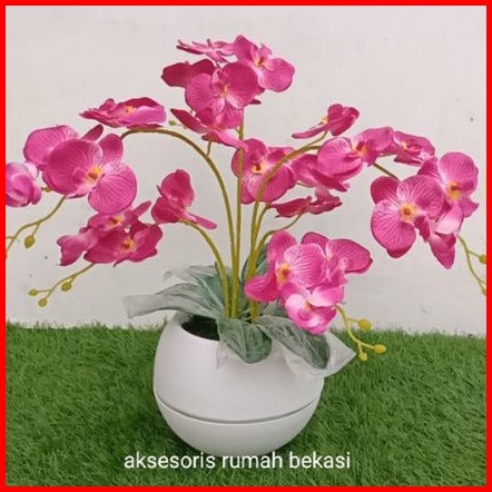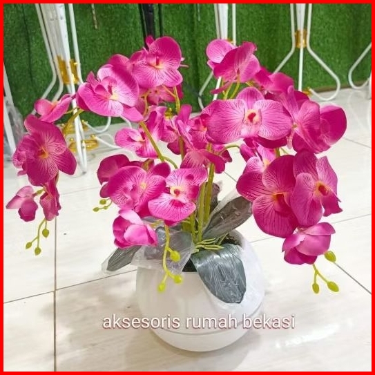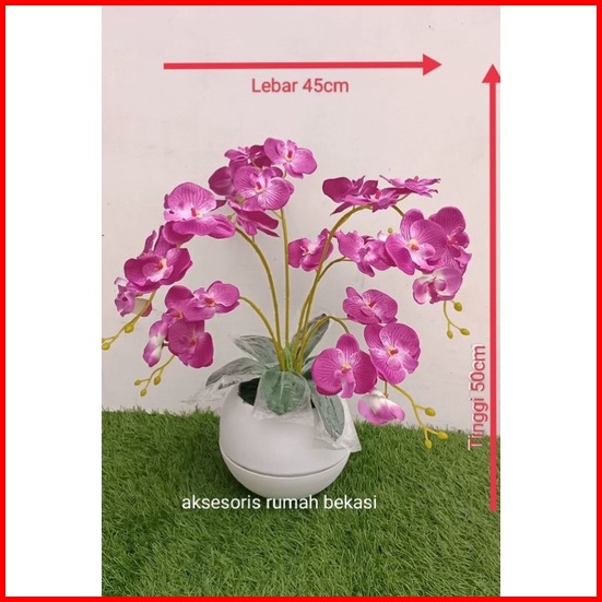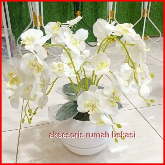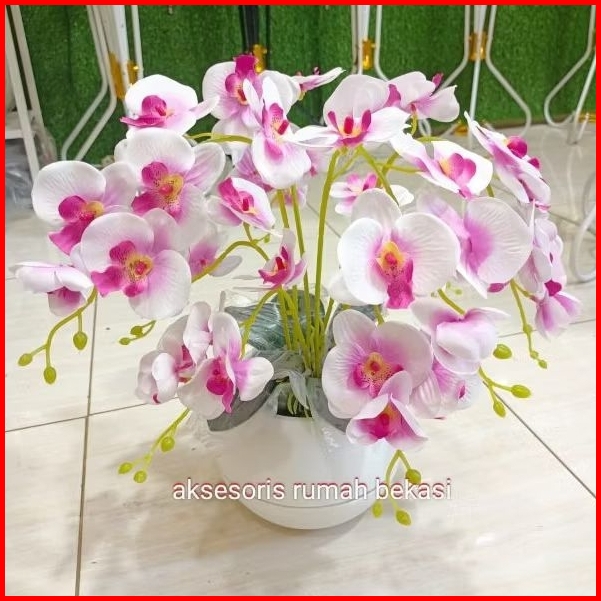 Bunga Anggrek Artificial 6 Dan 8 Cabang Dengan Pot Bola Jumbo