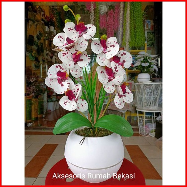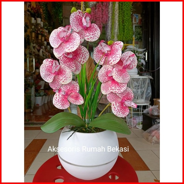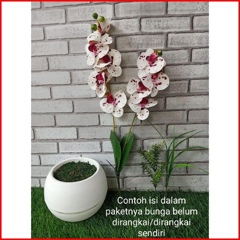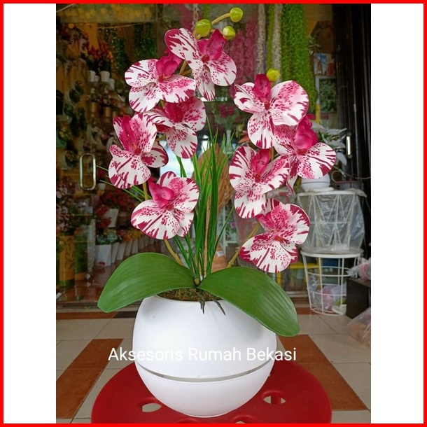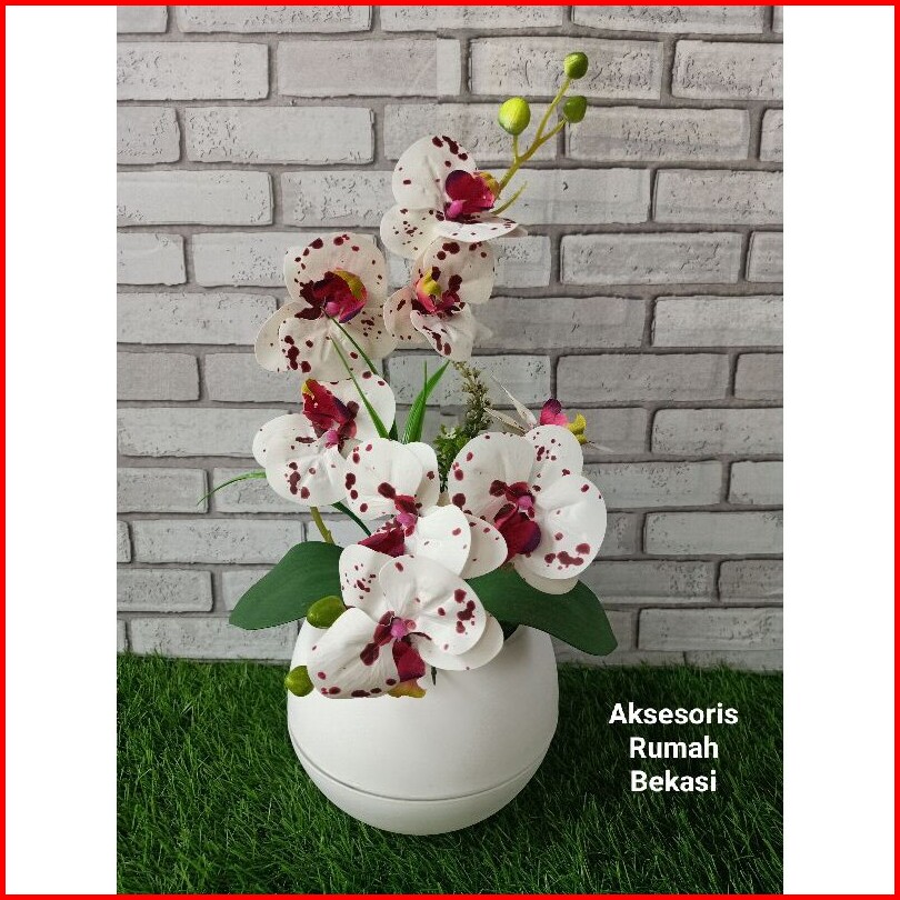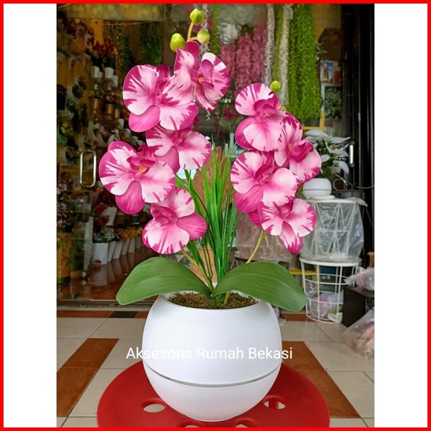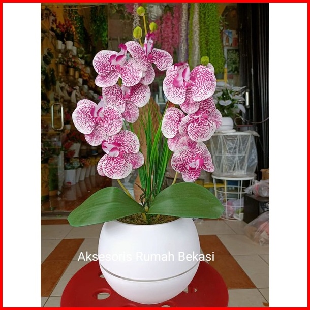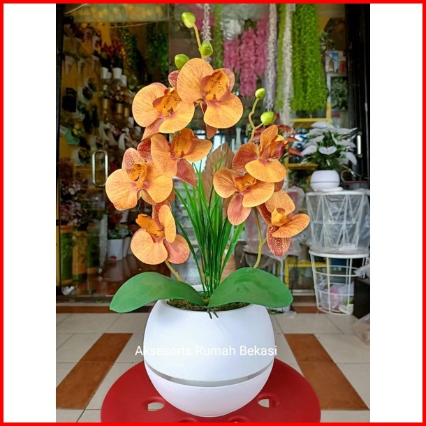 Bunga Anggrek Latex Artificial 2 Cabang Dengan Pot Bola