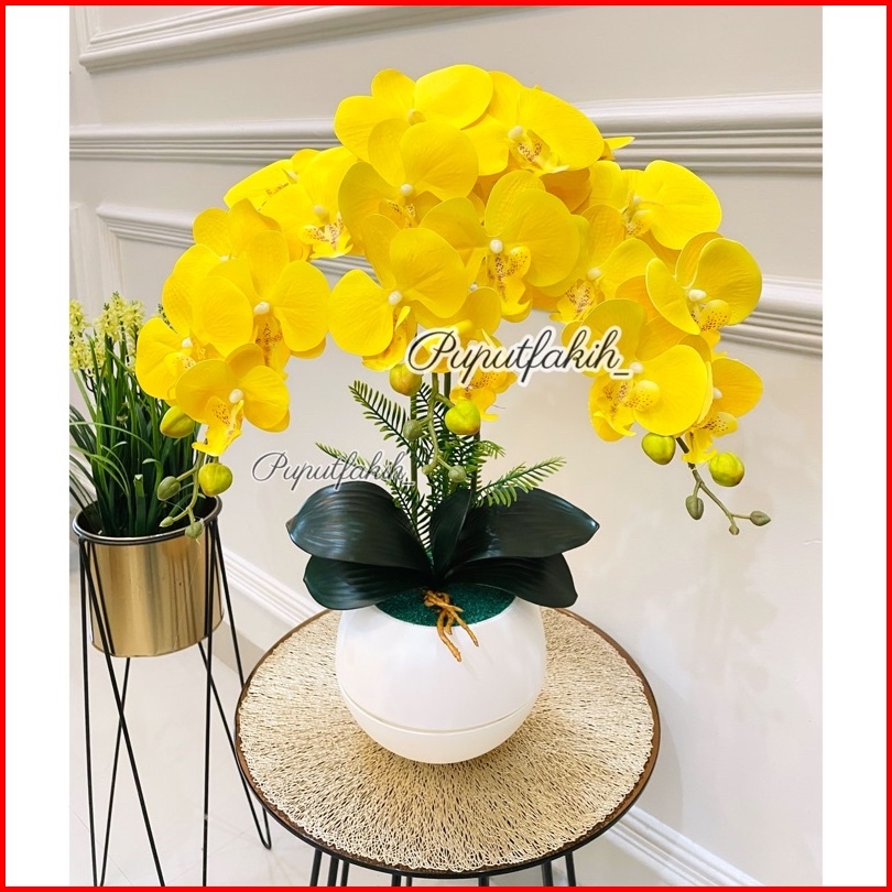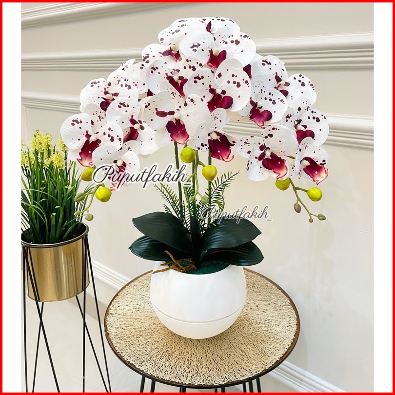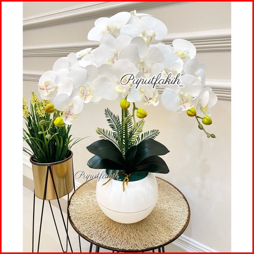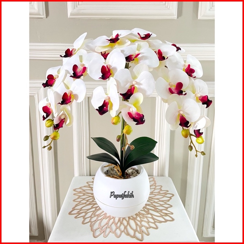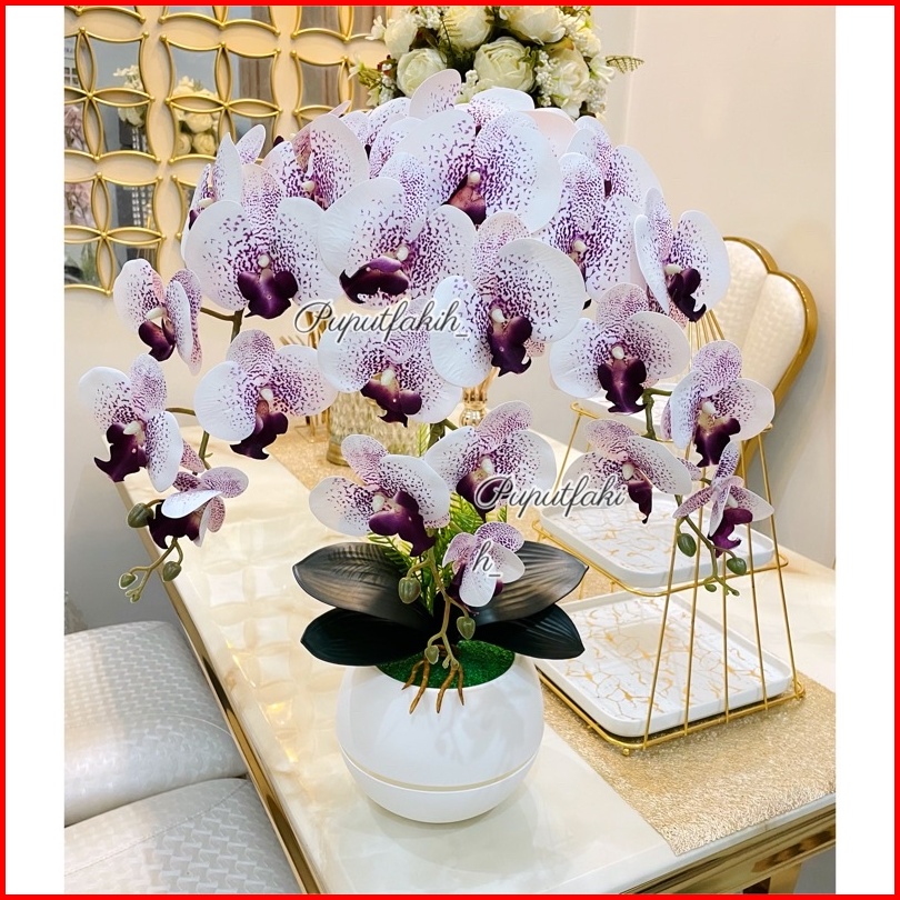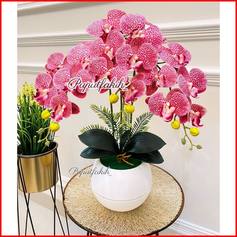 Bunga Anggrek Latex Teball Rangkai Dengan Pot Bola Besar