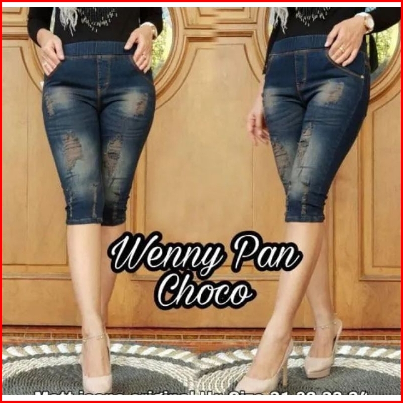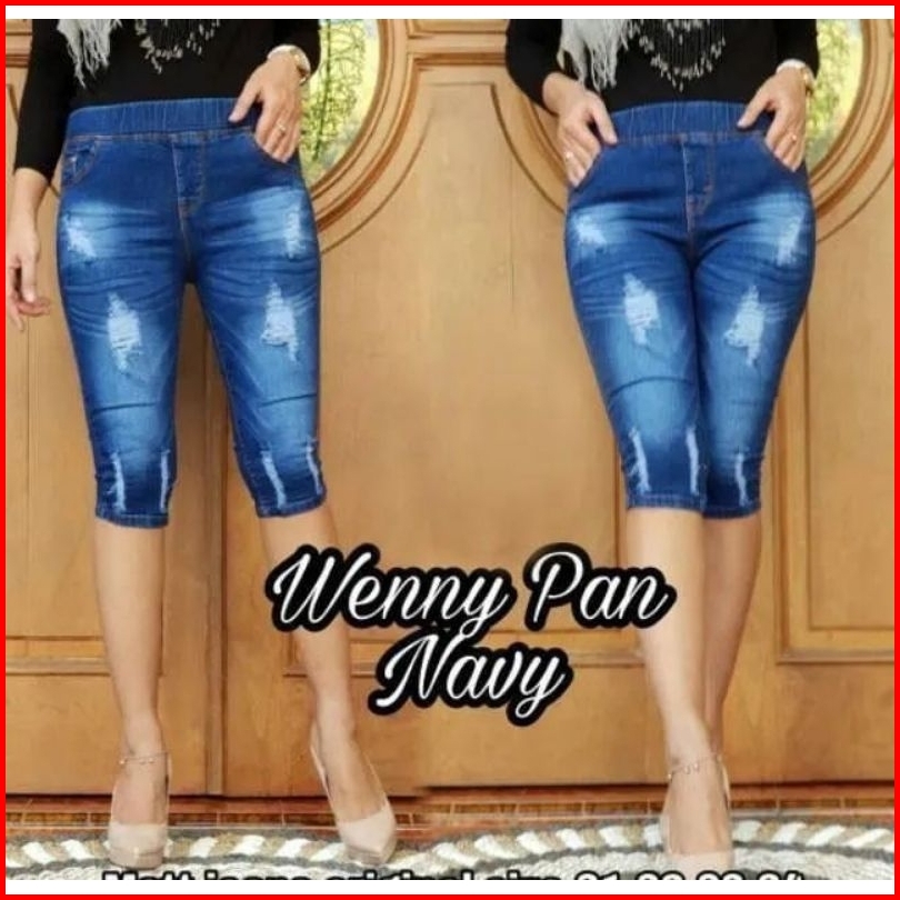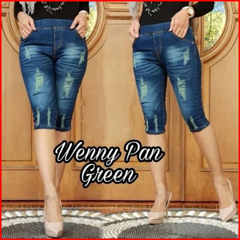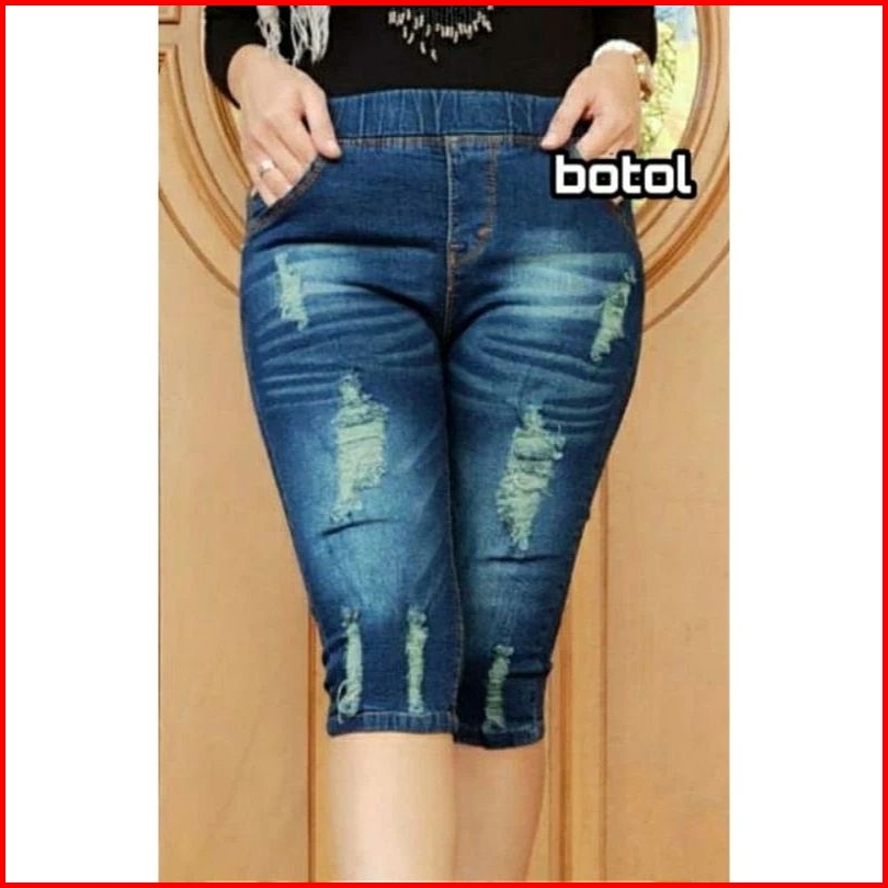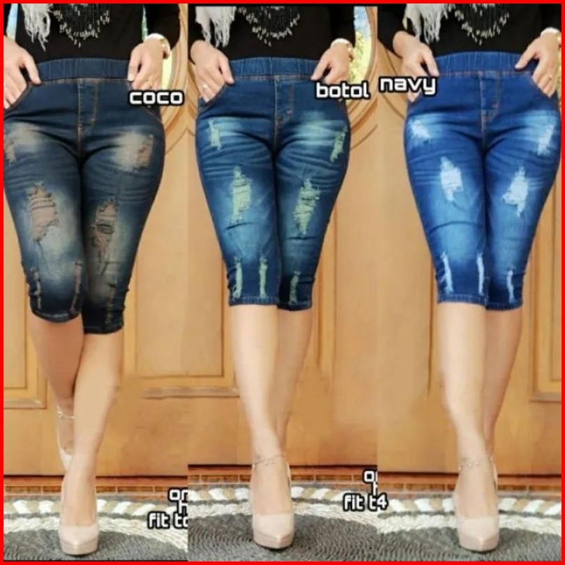 Celana Jeans Jegging Wanita Celana Pendek 7 8 Sobek Bahan Stretch Melar Pinggang Karet Tidak Begah