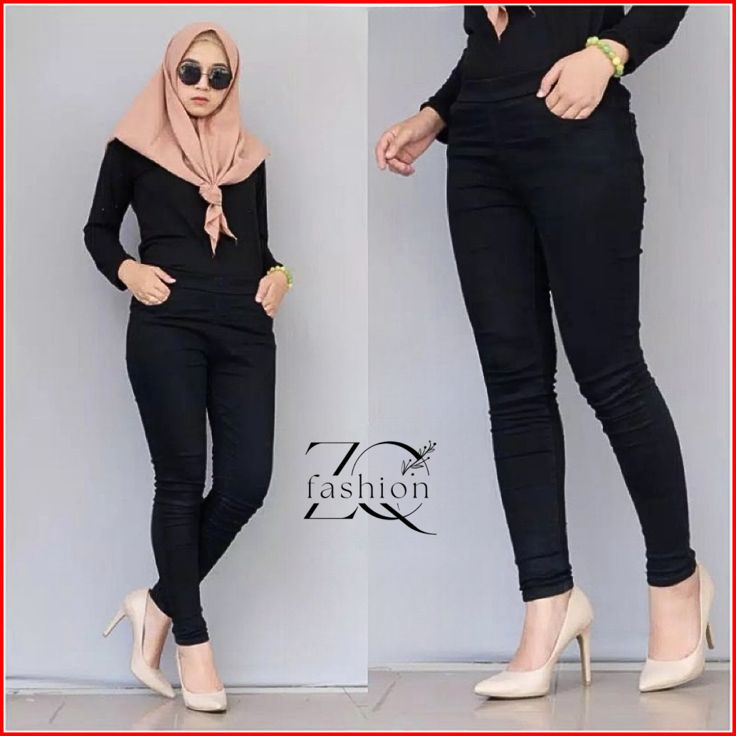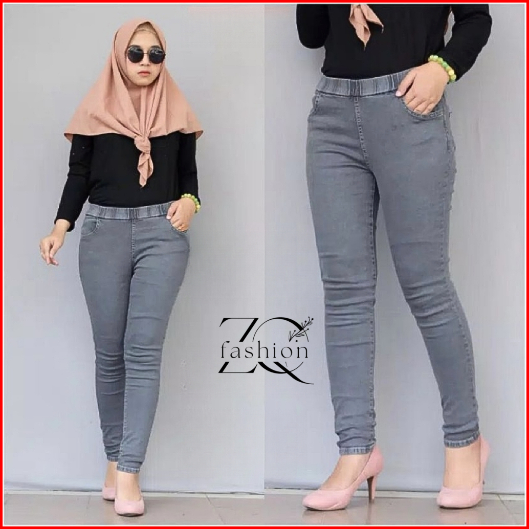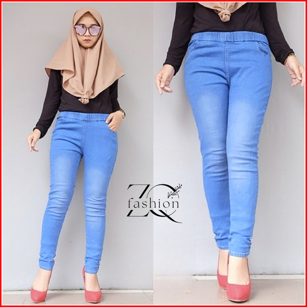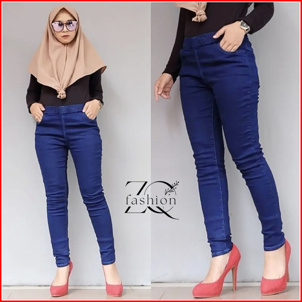 Legging Jeans Stretch - Celana Panjang Jeans Legging Wanita Pinggang Karet Slimfit