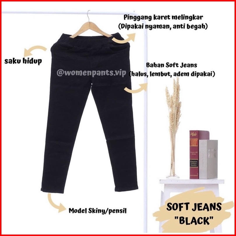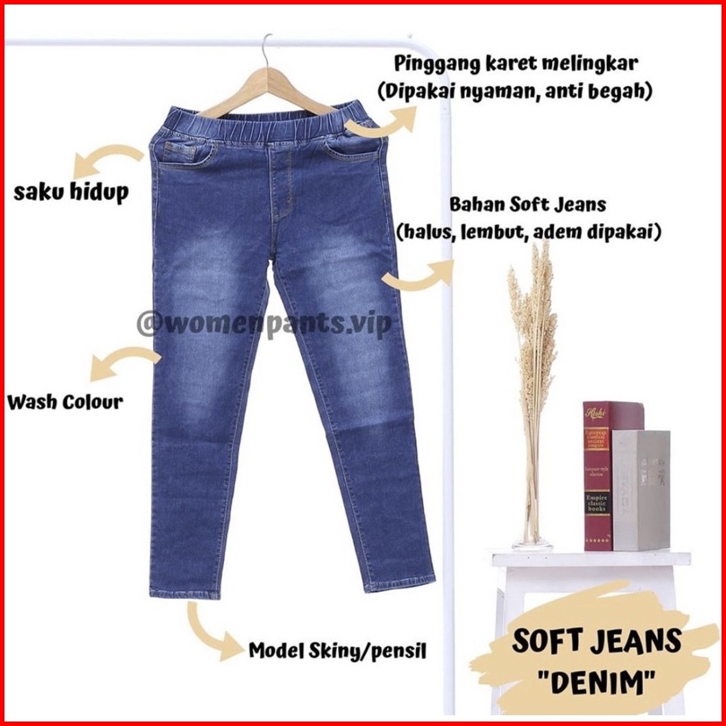 Celana Jeans Cewek Pinggang Karet Bahan Melar