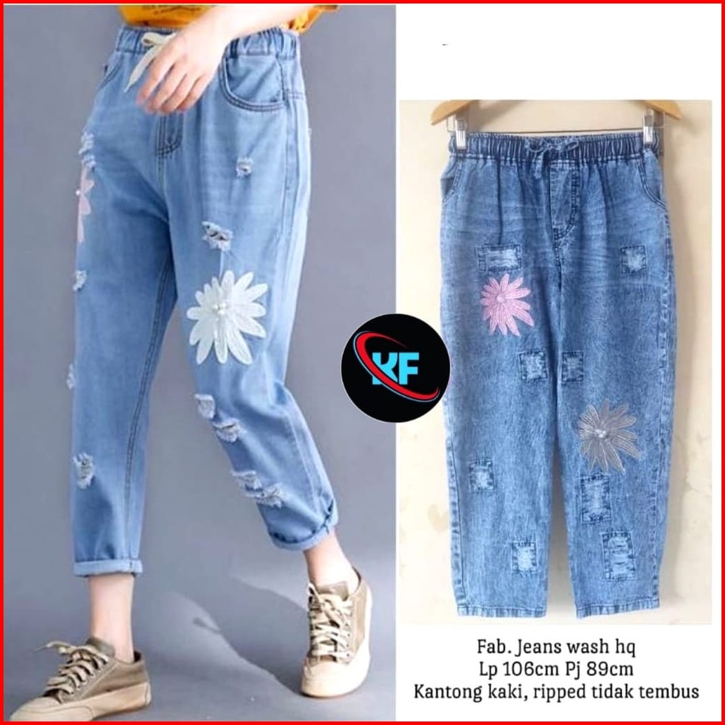 Sella Jeans Bordir Bunga Cempaka Wanita Terbaru Kekinian