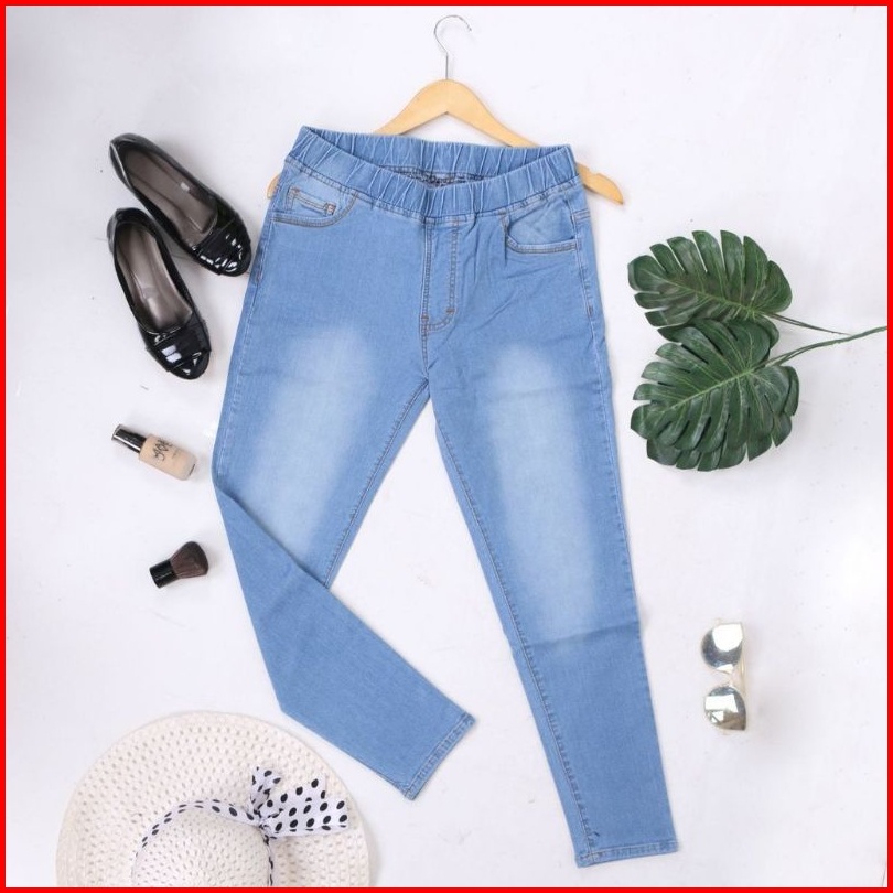 Celana Jeans Pinggang Karet Lejing Slim Ngaret Street