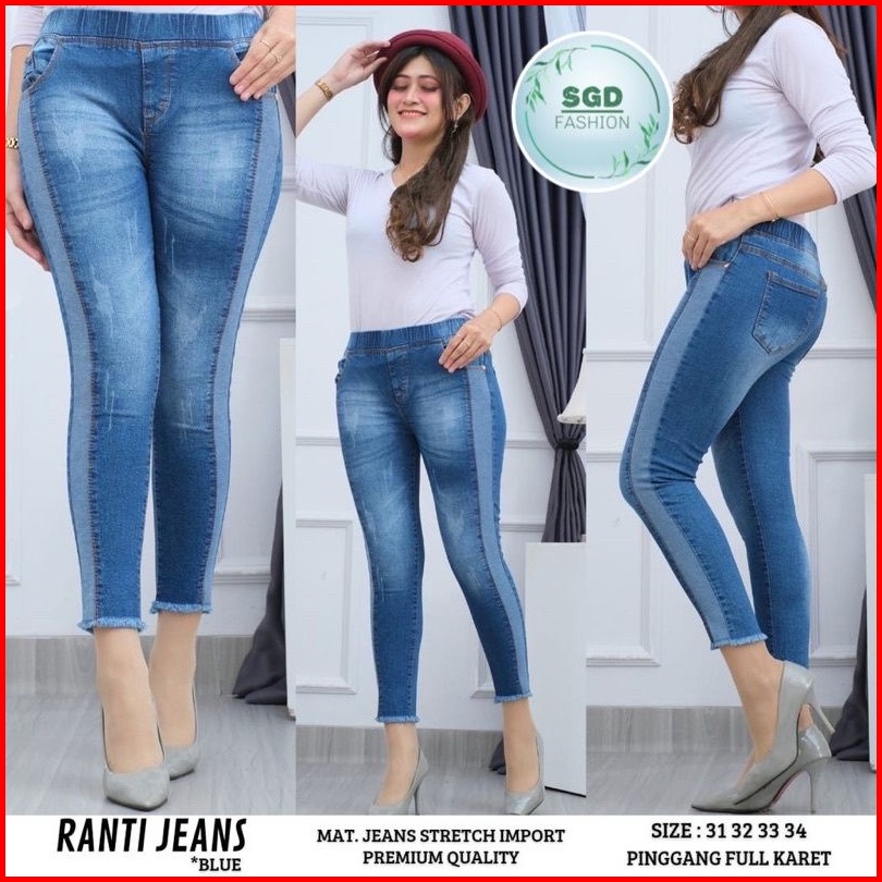Jeans Terbaru Ranti Jeans Bahan Melar Pinggang Karet.rinta Jeans List Bahan Melar Pinggang Fullkaret