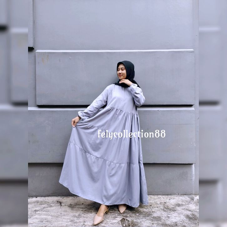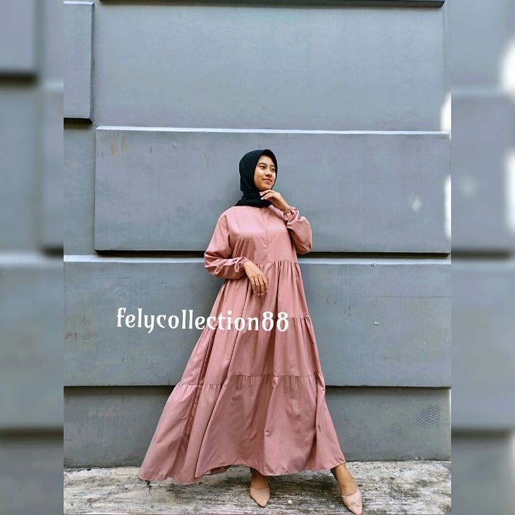Gamis Dress Kekinian Maxi Muslimah Premium Bahan Katun Micro Wanita Lengan Panjang Motif Polos Kekinian Fit To XL