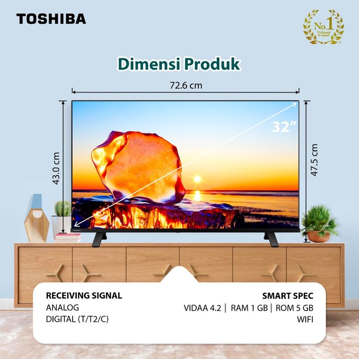 Toshiba TV 32" HD Smart TV WIFI Netflix/Youtube Dolby Audio Screen Sharing HDMI Digital - 32E31KP