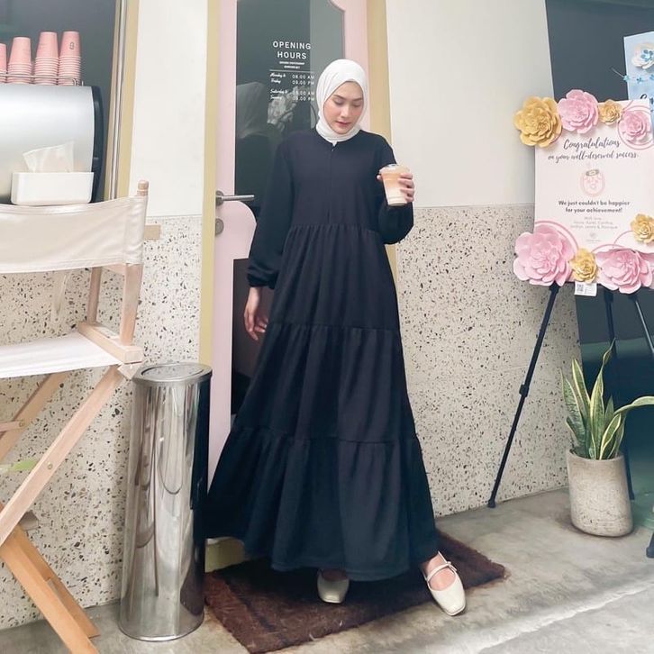 Gamis Long Dress Premium Maxi Busui Muslimah Premium Bahan Katun Wanita Lengan Panjang Motif Polos Ukuran Allsize