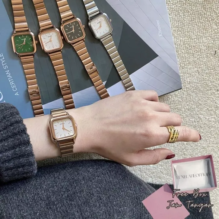 LuxeLane Jam Tangan Wanita Rantai Ulzzang Warna Silver Gold Kotak Kecil Mini Jam Cewek Strap Elegan Mewah