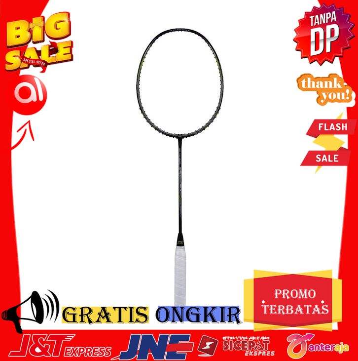 BAGUS LI-NING BADMINTON RACKET 3D CALIBER 300I BLACK/GOLD AYPP006-4 BUNDLE COVER+ STRING