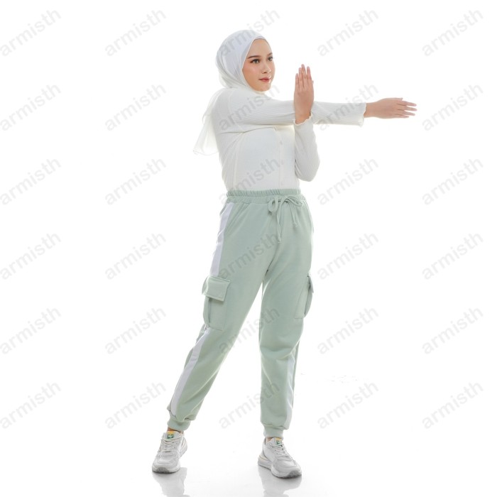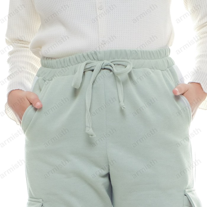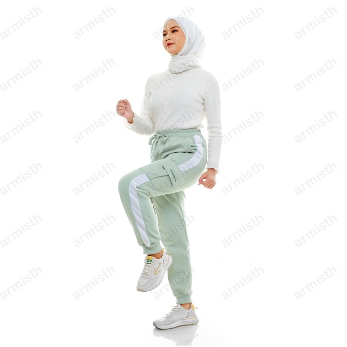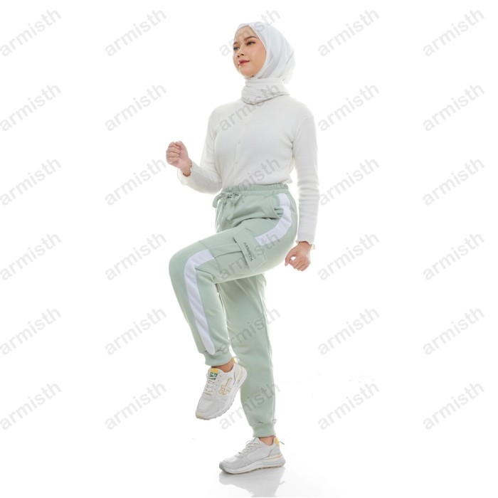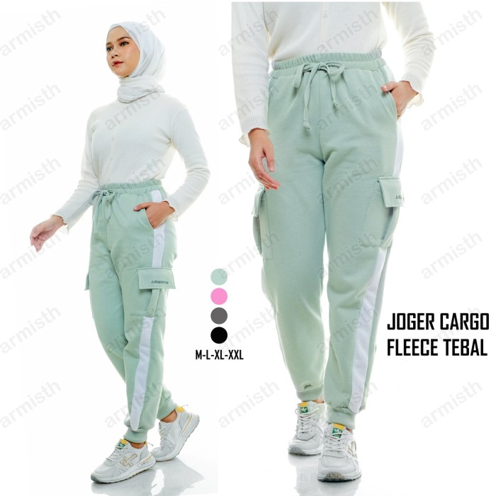CELANA CARGO PANJANG WANITA FLEECE TEBAL / CELANA OLAHRAGA JOGER CARGO - HITAM, XL
