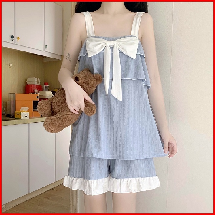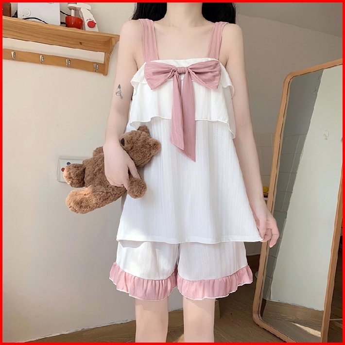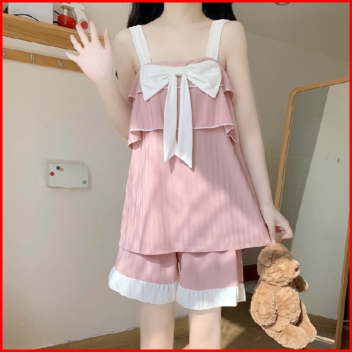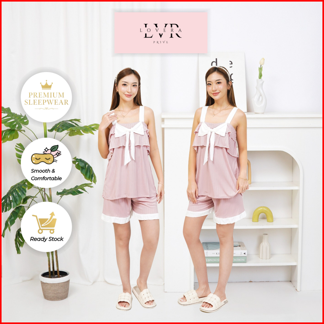 Lovera Piyama Stelan Model Tanktop Layer Pita Lengan Tali Celana Pendek