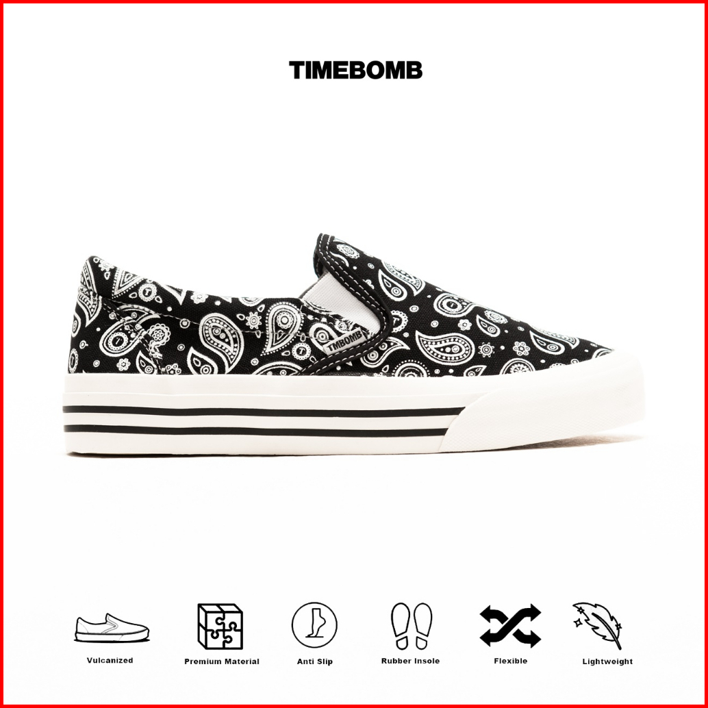 Sepatu Timebomb Vulcanized Slip On Paisley Bw Stripe