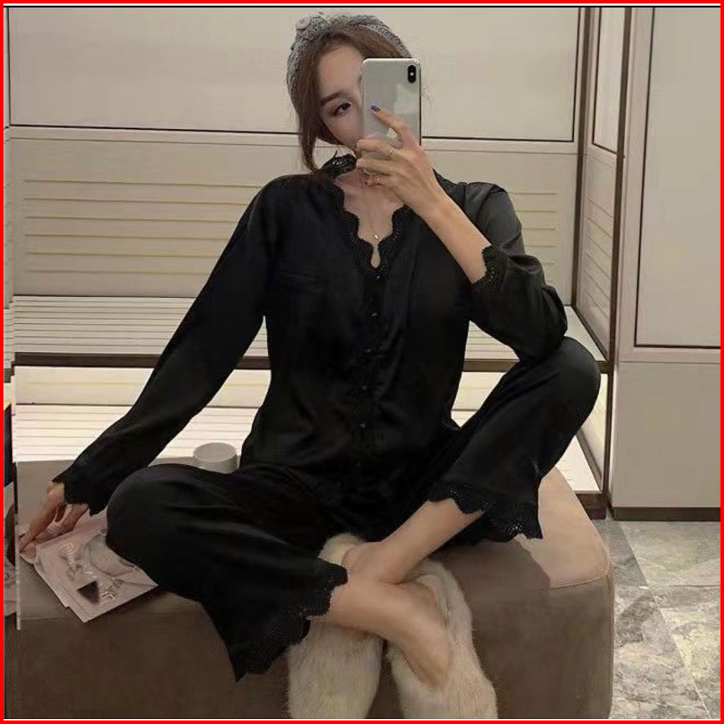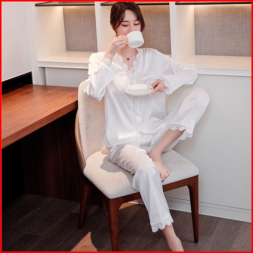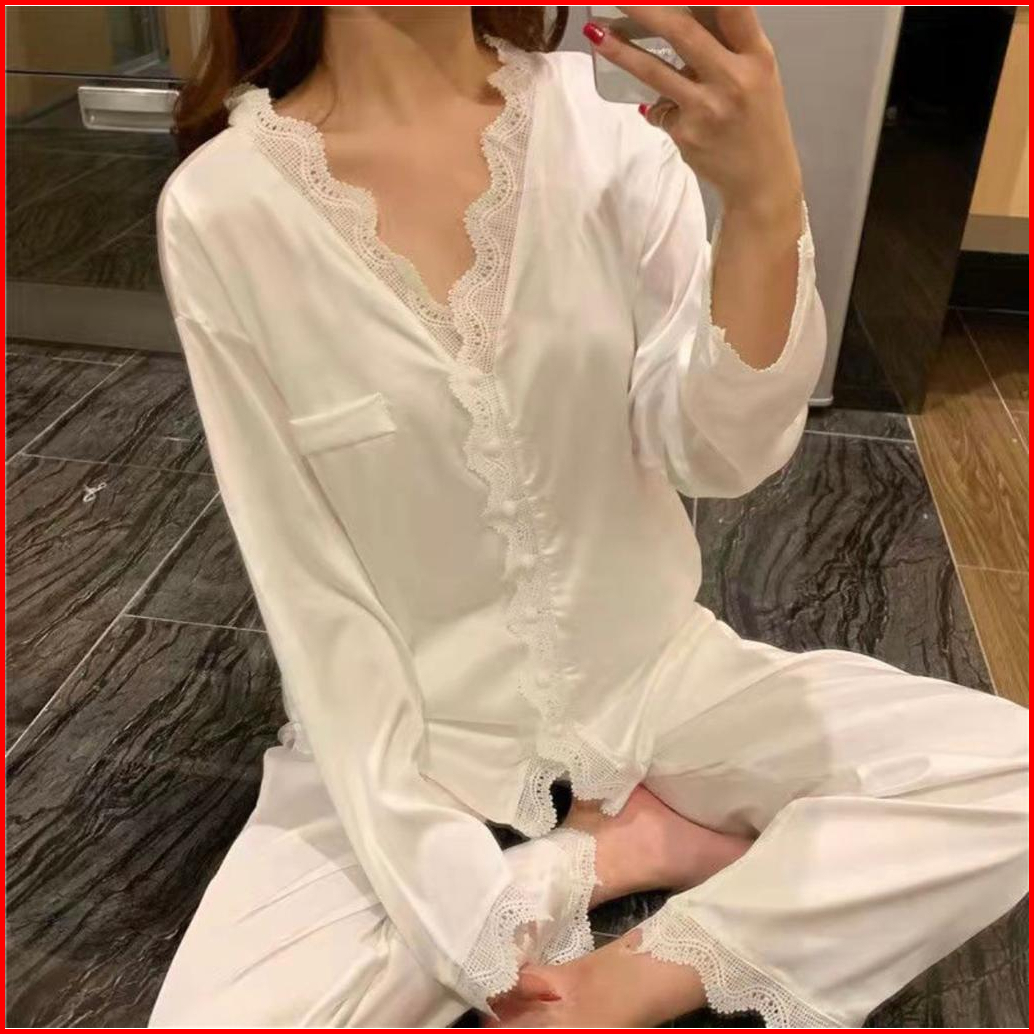 006 Luxury Piyama Satin Lengan Panjang Celana Panjang Kerah Bunga Kancing Hidup Diamond Bahan Satin High Quality Piyama