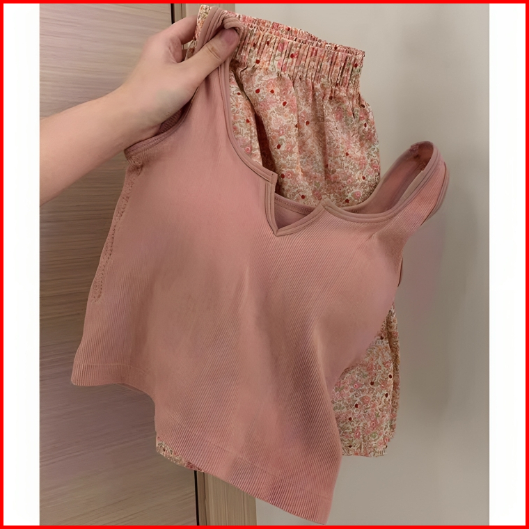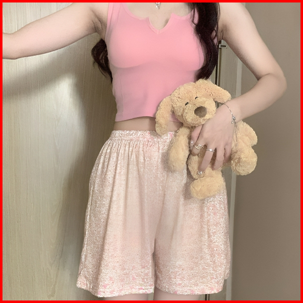 Stelan Piyama Baju Tidur Wanita Celana Pendek Atasan Tank Top Hot Short Pants Sttp