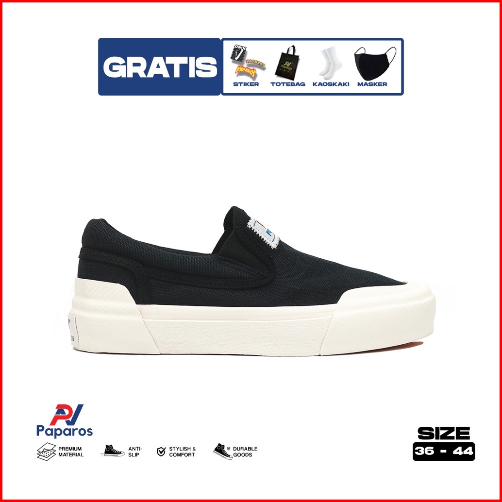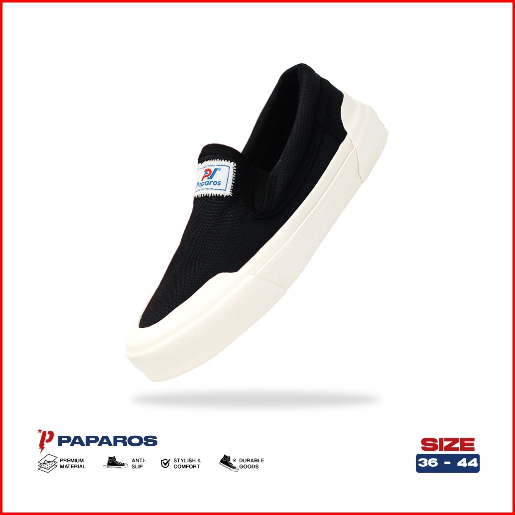 Sepatu Paparos Footwear Slip On Basic Og Black White Sepatu Sneakers Casual Pria Wanita