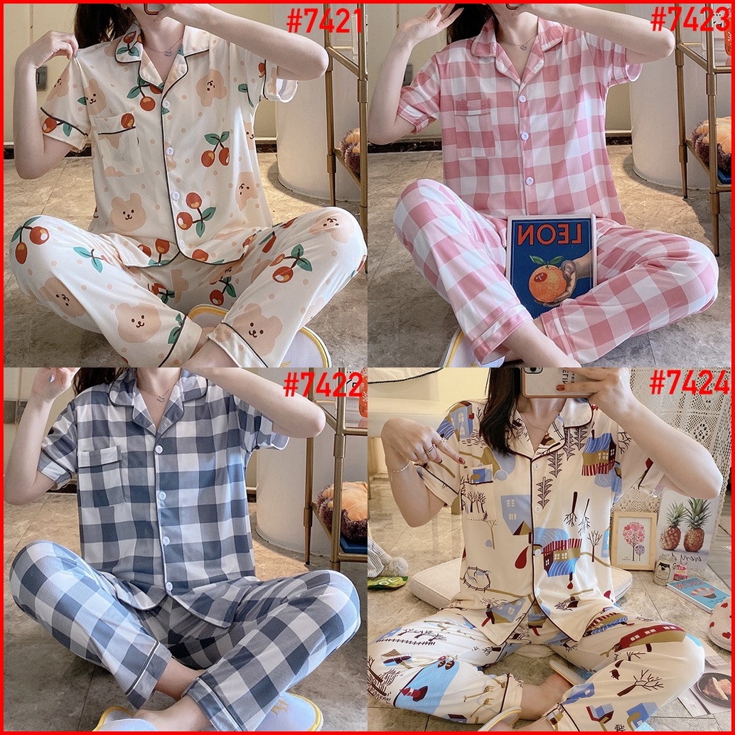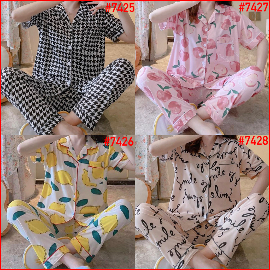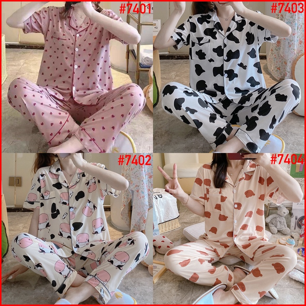 Piyama Baju Tidur Wanita Import Fashion Karakter Cp Kerah Kemeja Lengan Pendek Celana Panjang