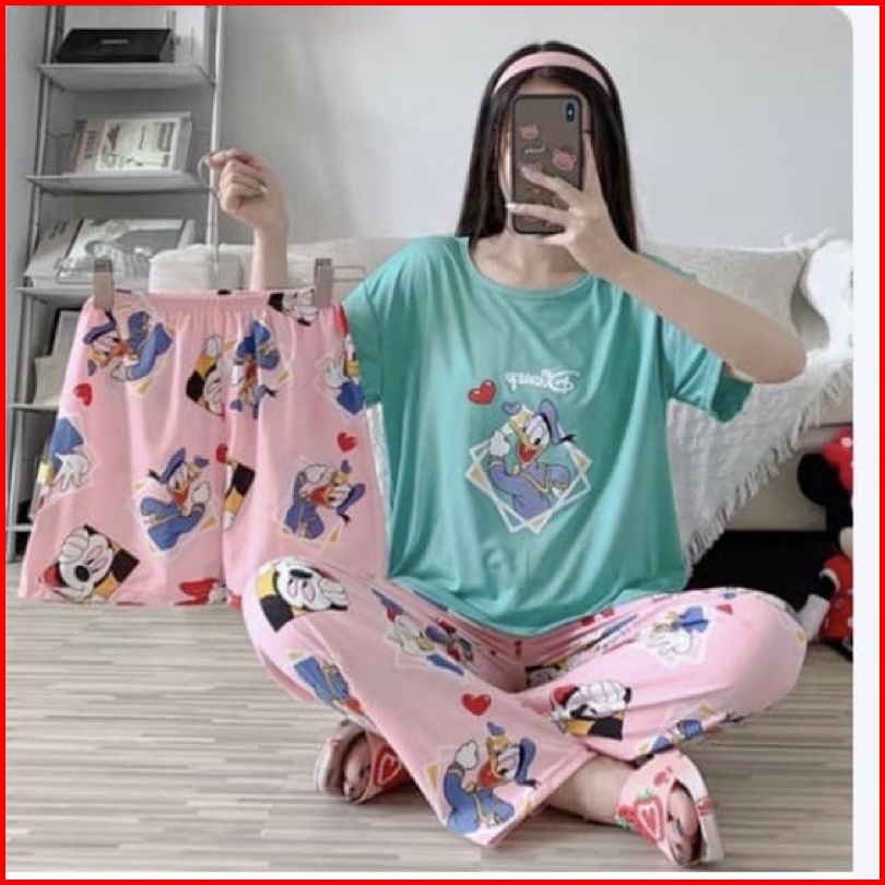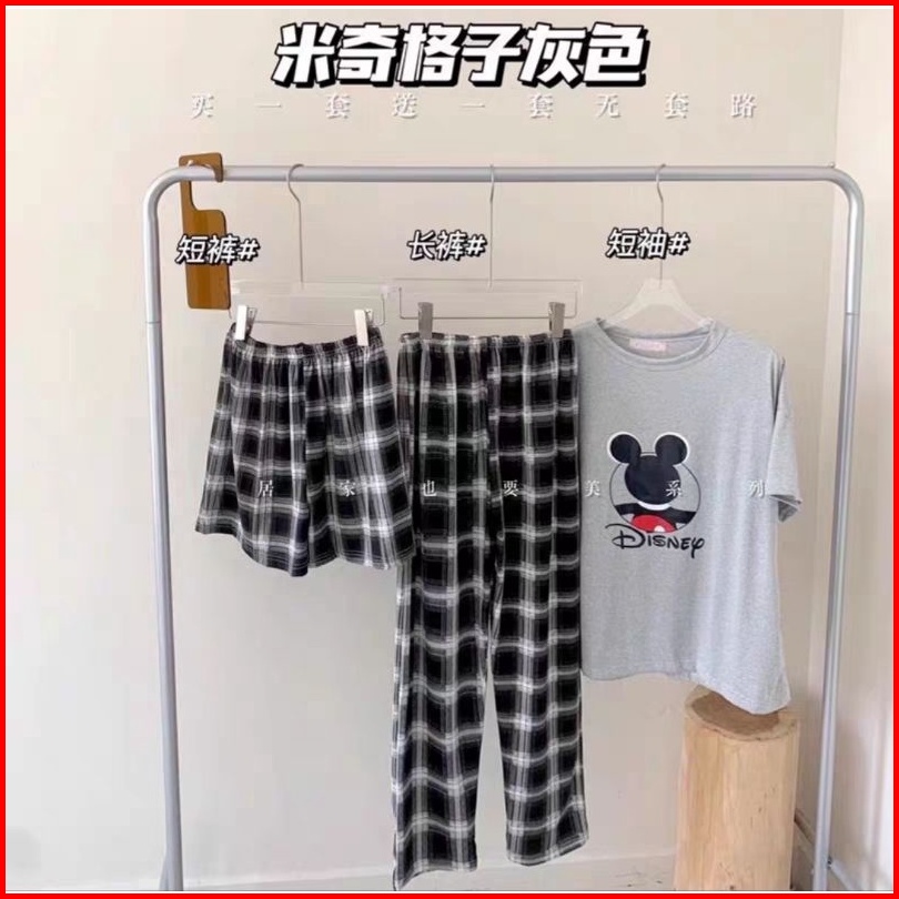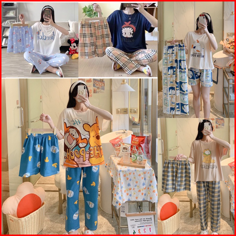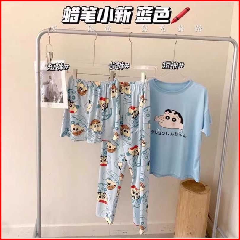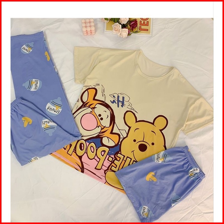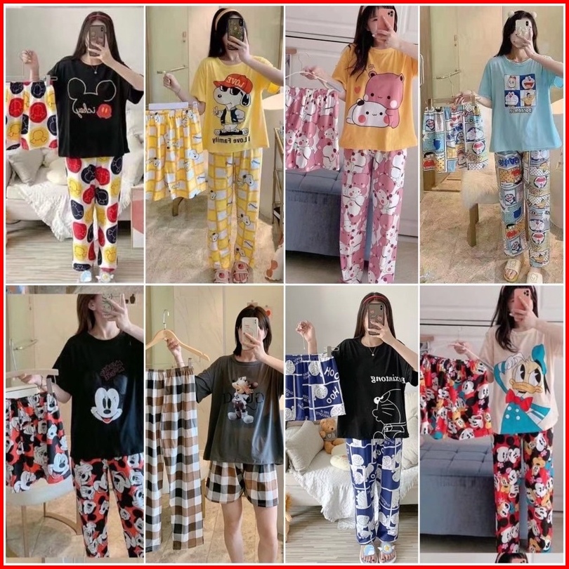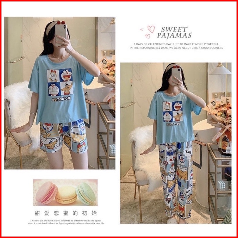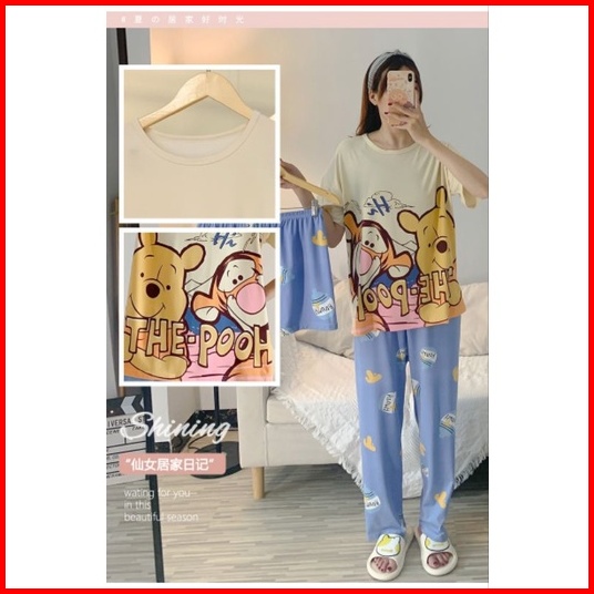 Gs - Piyama Set 3in1 Piyama Lengan Pendek Korean Baju Tidur Wanita Kartun Lucu Cute Bahan Katun