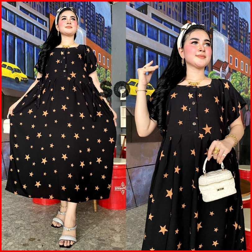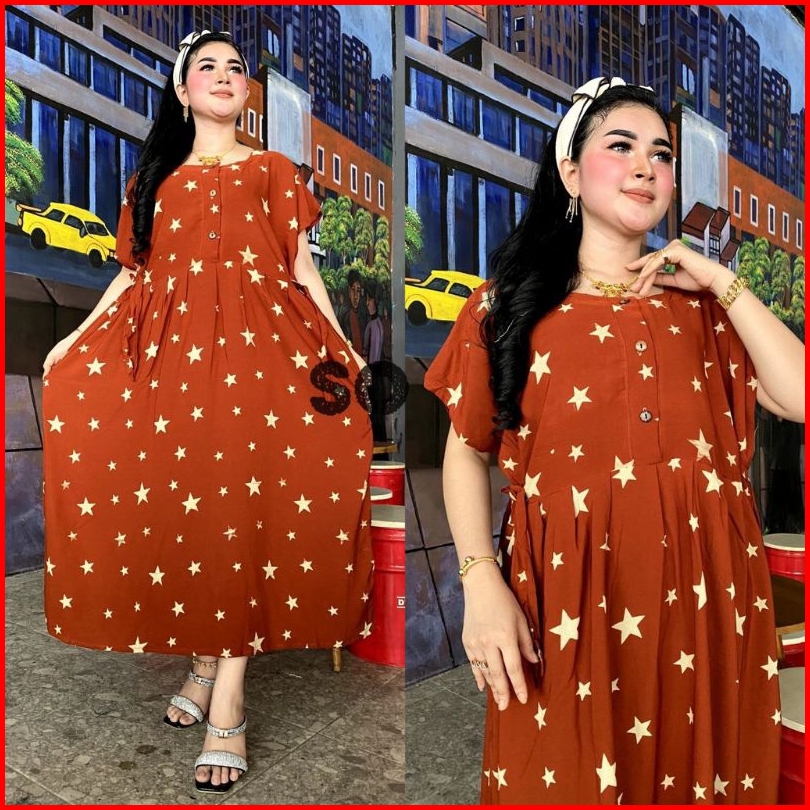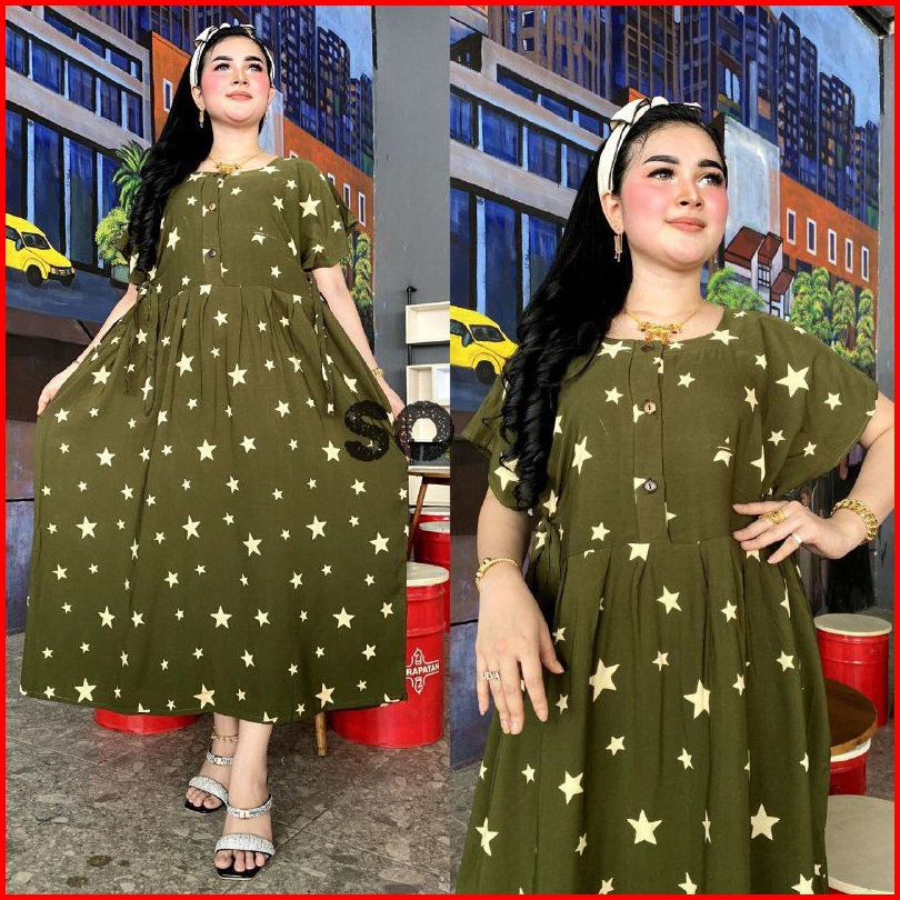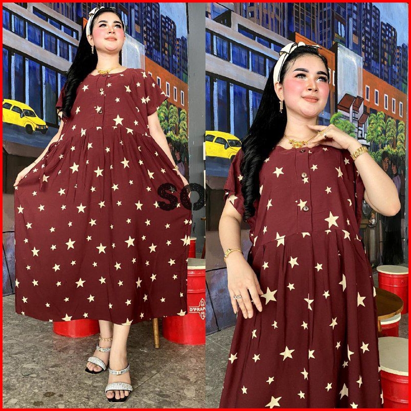 Chibi Daster Jumbo Rayon Motif Bintang Dress Ibu Hamil Dan Menyusui