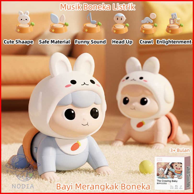 Nodia Mainan Bayi Merangkak Boneka Merangkak Mainan Bayi Crawling Doll Robot Jalan Perayap Musik Boneka Listrik Cocok Un