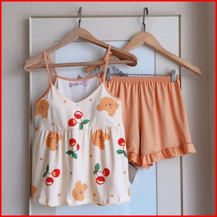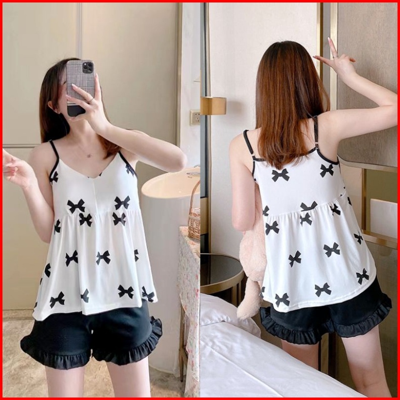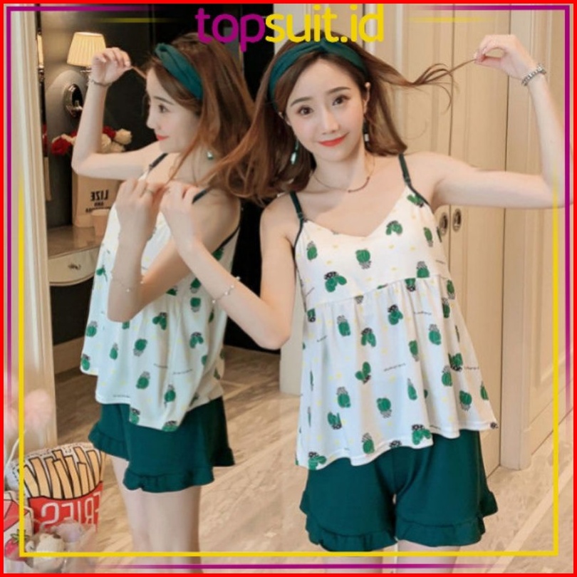Setelan Baju Tidur Tanktop Import Wanita Dengan Cup Bra Piyama Sexy Wanita Tpk02