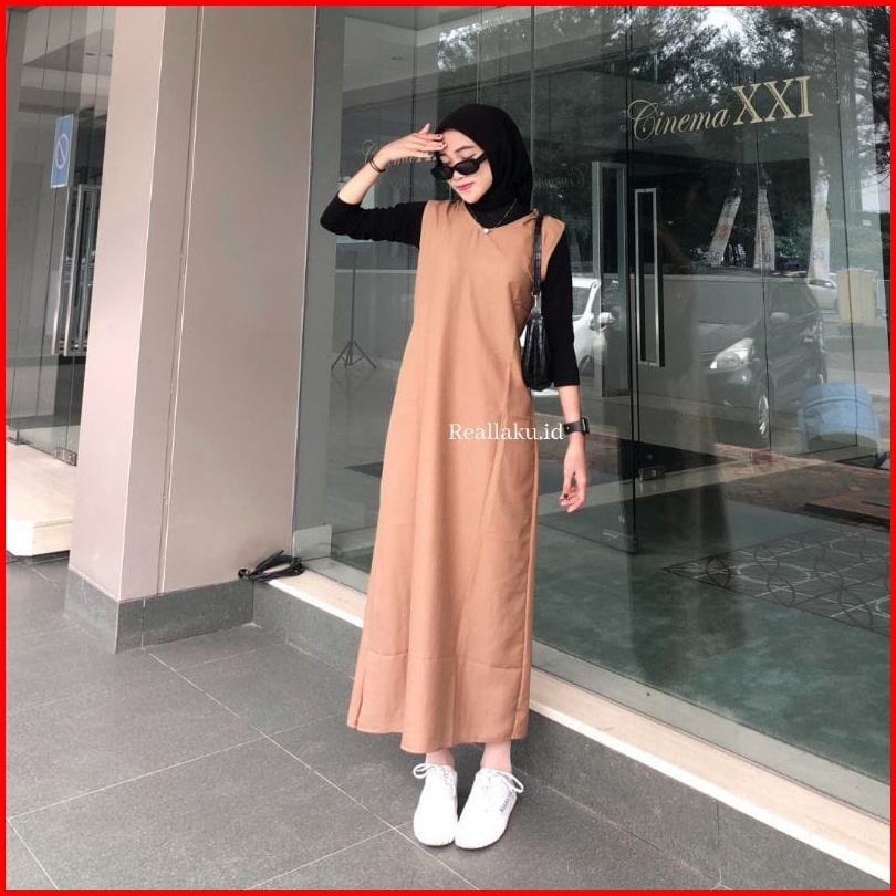 Inner Dress Panjang Tanpa Lengan S M L Xl Singlet Sleeveless Inner Span Maxi Allsize Daleman Polos Panjang Jersey Spande