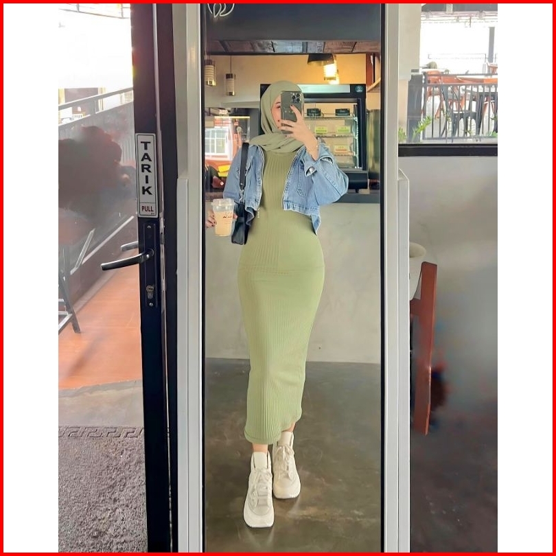 Long Dress Rajut Basic Inner Span Tanpa Lengan - 2 Ukuran