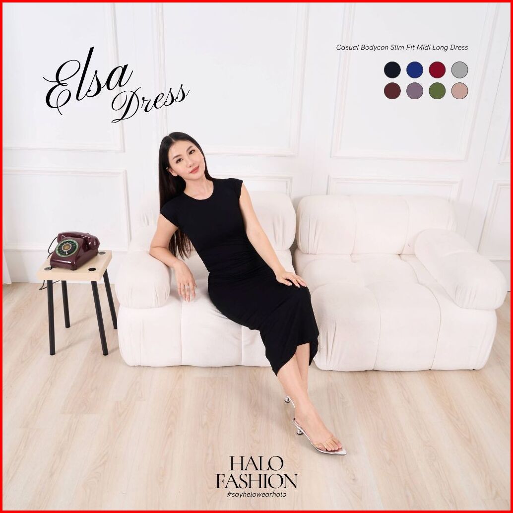 Halofashion Elsa Dress Casual Wanita Bodycon Slim Fit Midi Long Dress