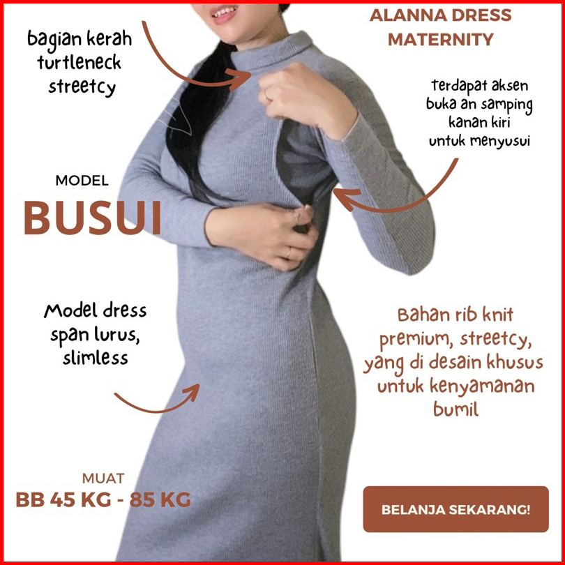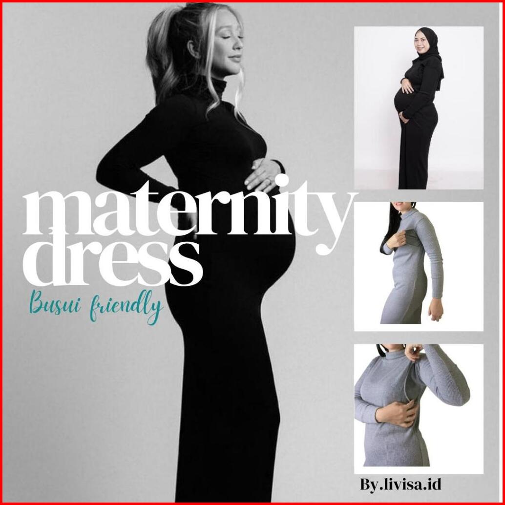 Riche- Basic Long Inner Dress Lengan Panjang Busui Friendly Baju Hamil Foto Maternity Model Span
