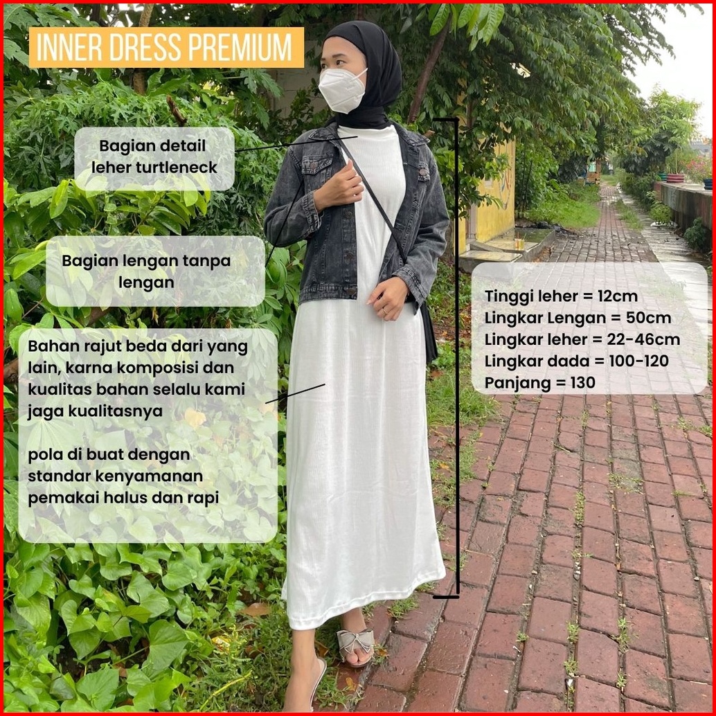 Inner Dress Span Size M L Xl Xxl Gamis Mangset Tanpa Lengan Inner Dress Sleevelees Inner Drees Turleneck