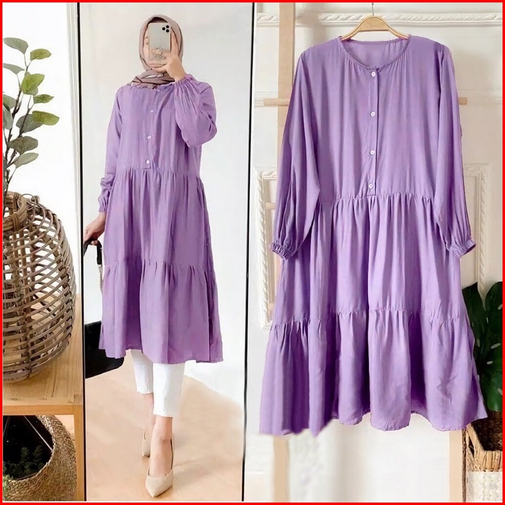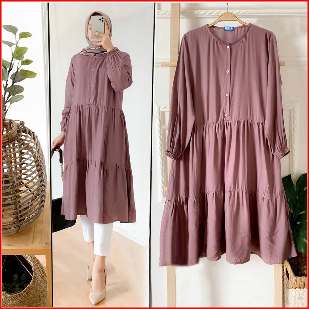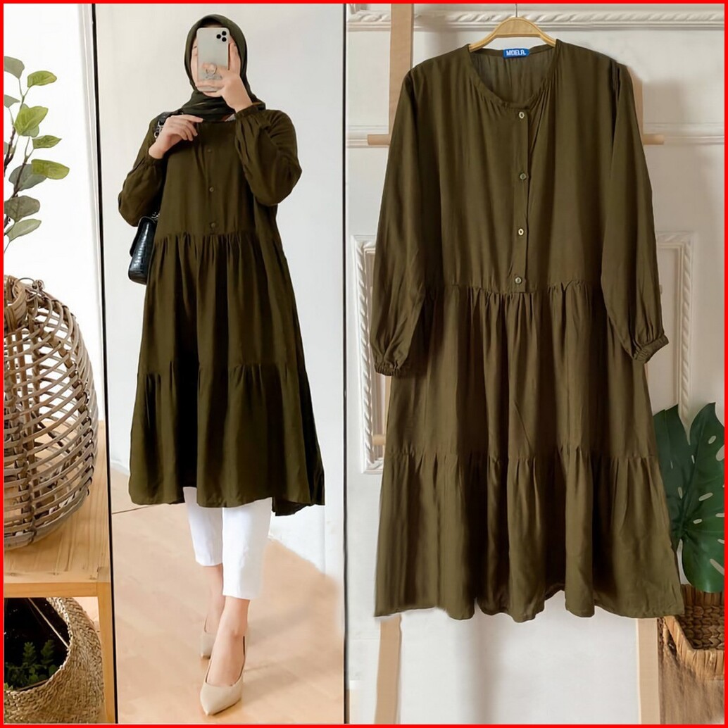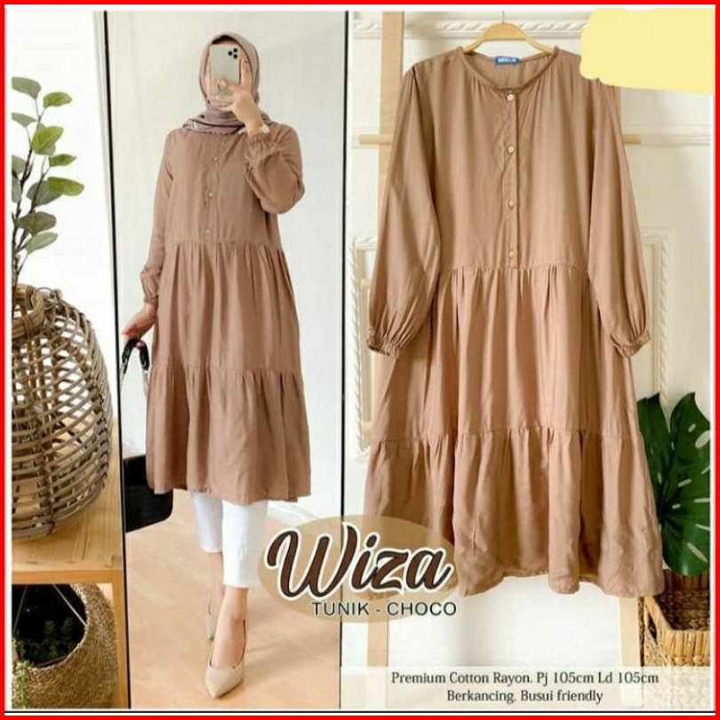 Atasan Kekinian Wiza Tunik - Baju Atasan Muslim Wanita Terbaru Tunik Polos Bahan Katun Rayon
