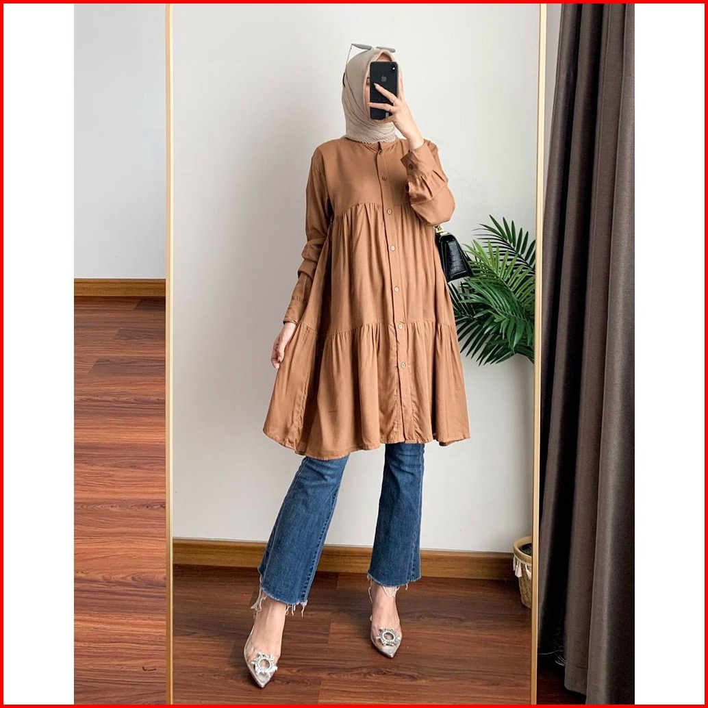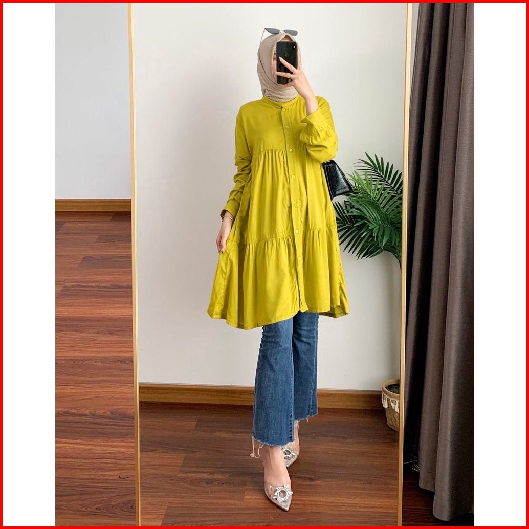 Countia Tunik Rayon Kekinian Tangan Panjang - Tunik Rayon Wanita - Terbaru - Bigsize - Jumbo - Fuchia - Fashion Muslim -