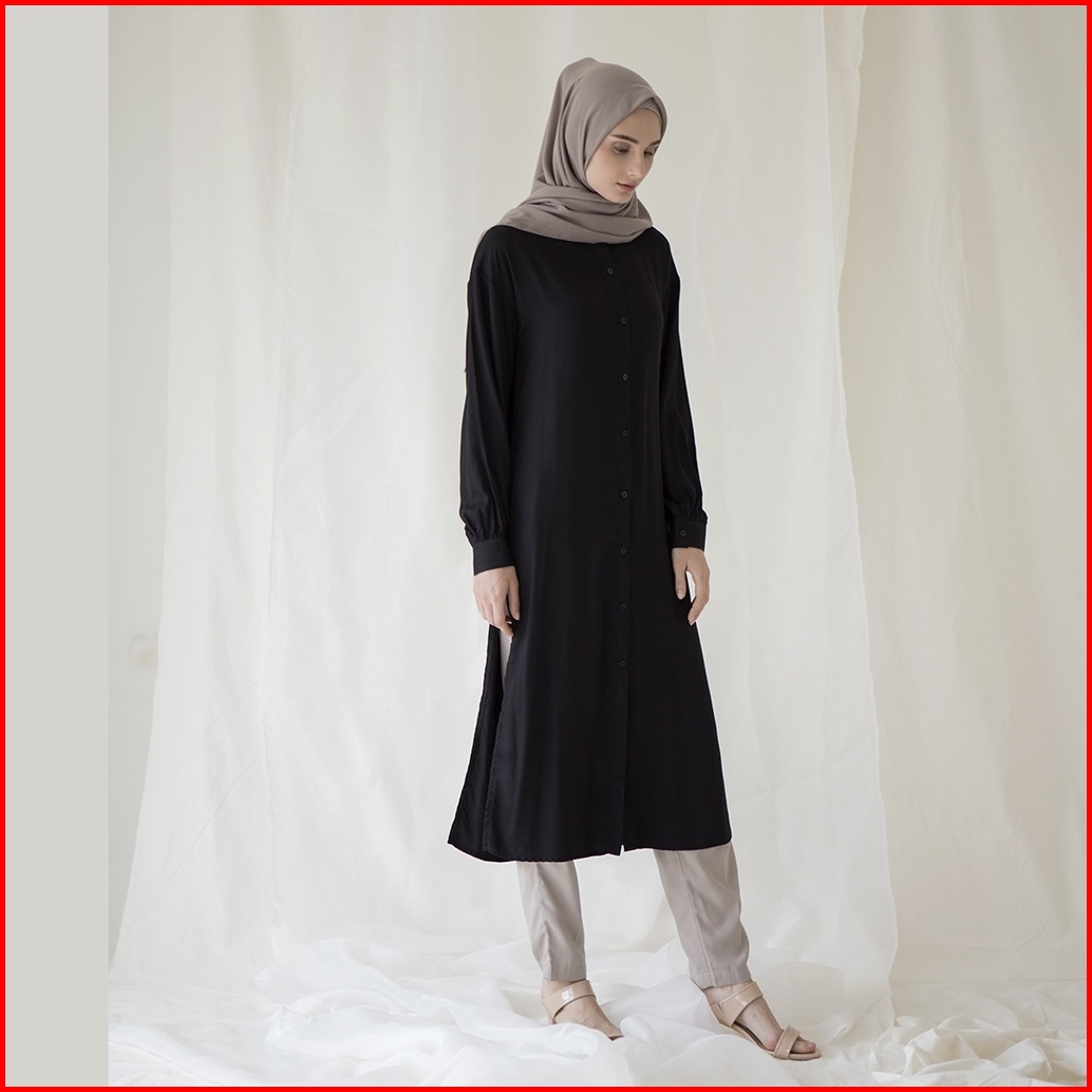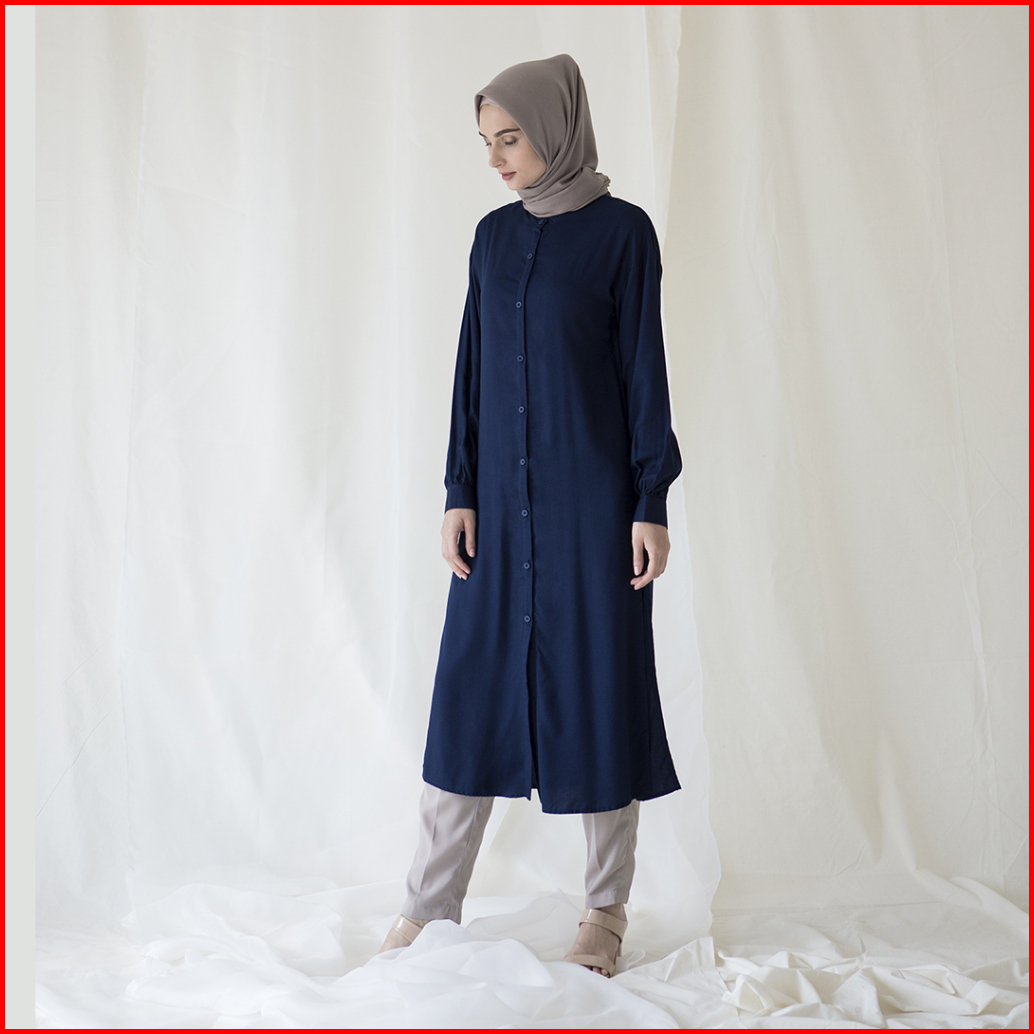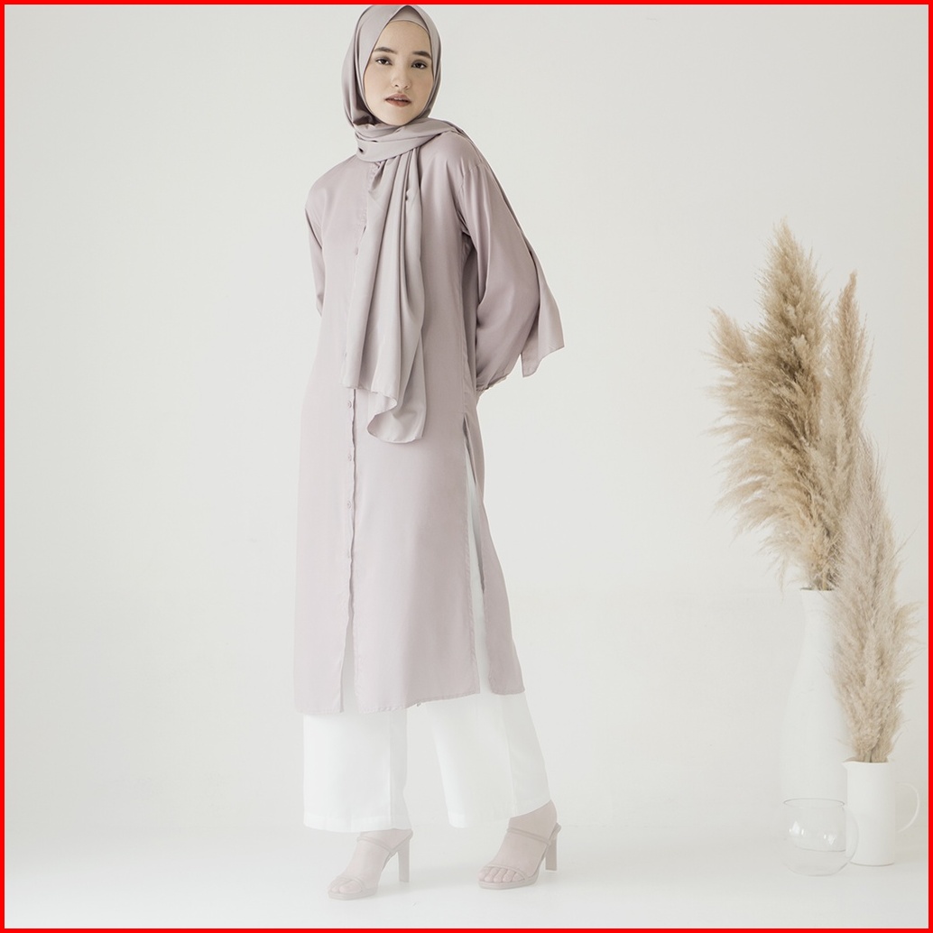 Tari By Aska Label - Tunik Rayon Kancing Lengan Panjang Warna Hitam Coksu Putih Biru Navy Lilac Coklat Biru Muda
