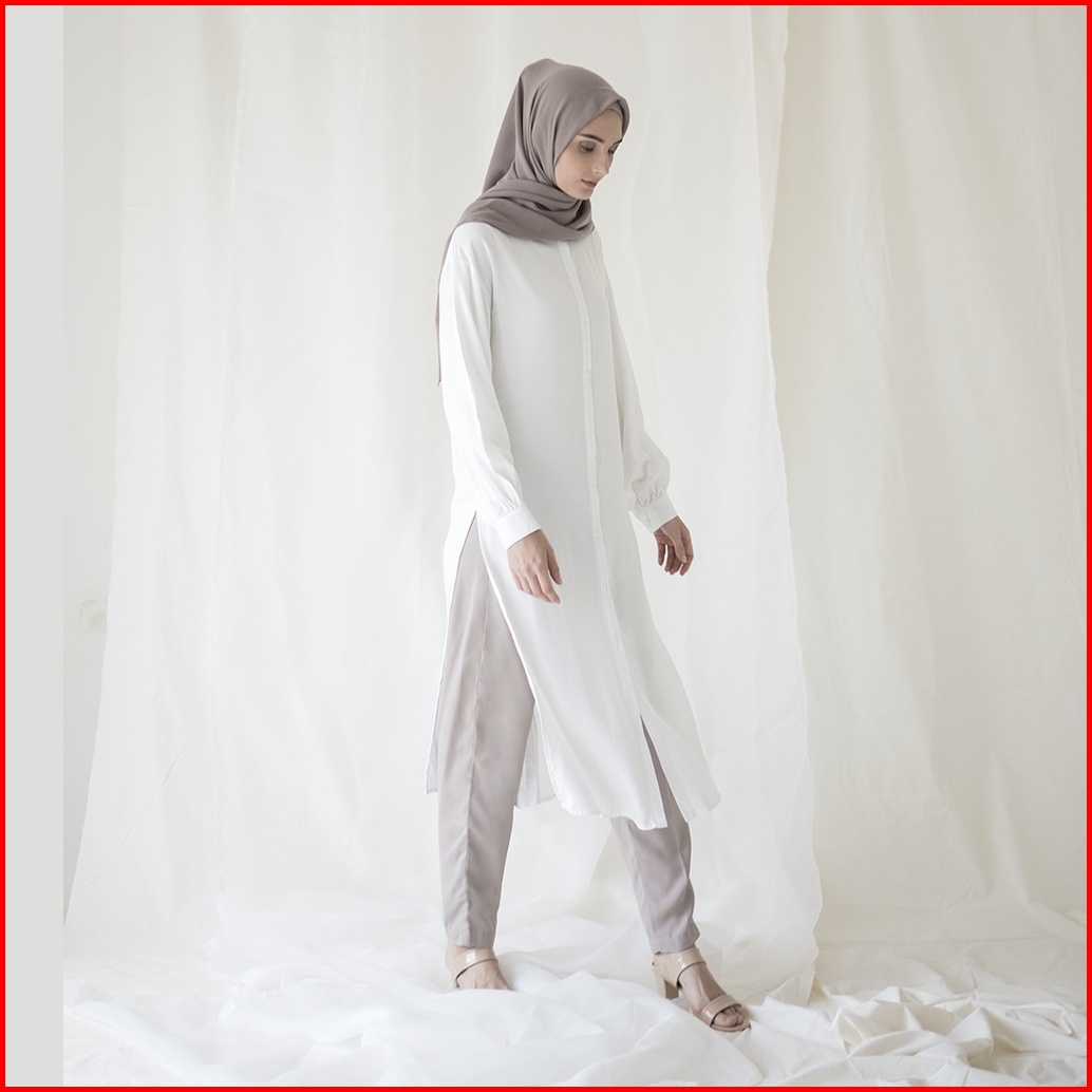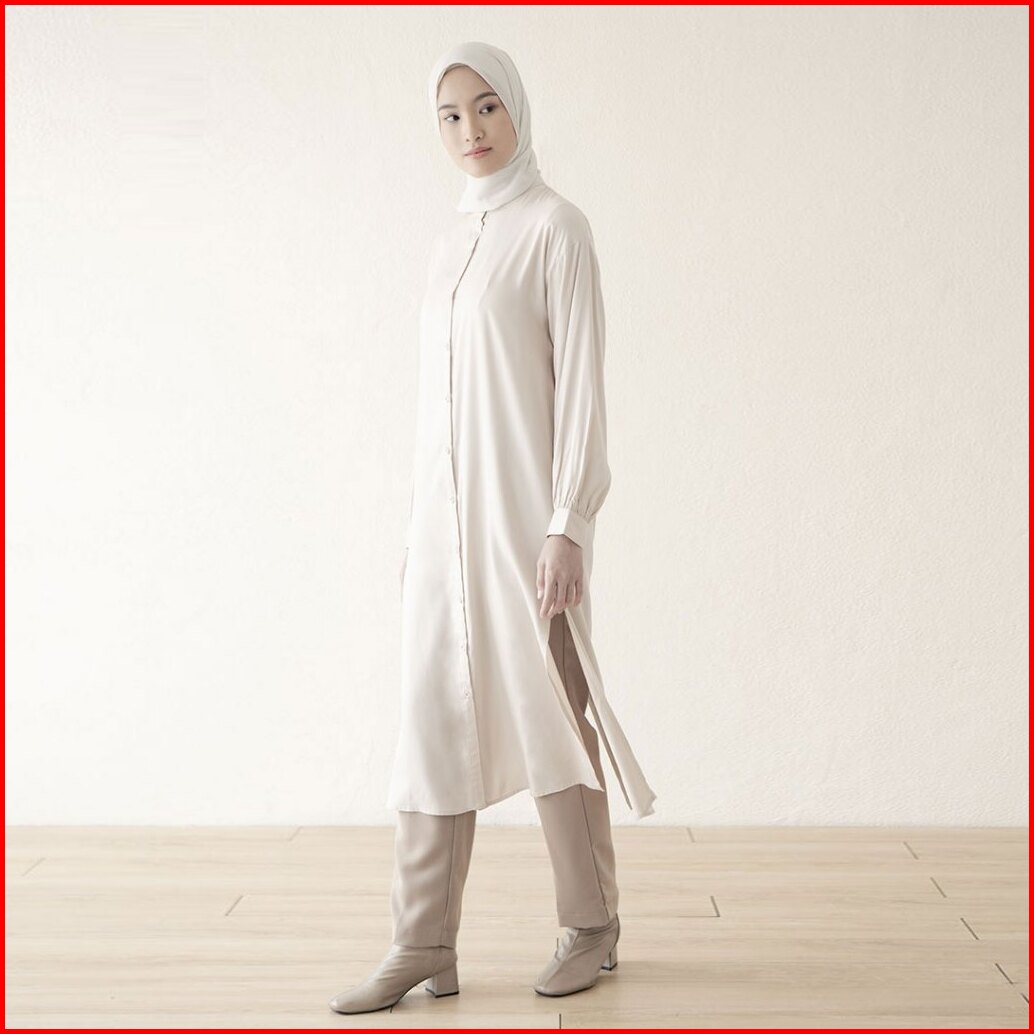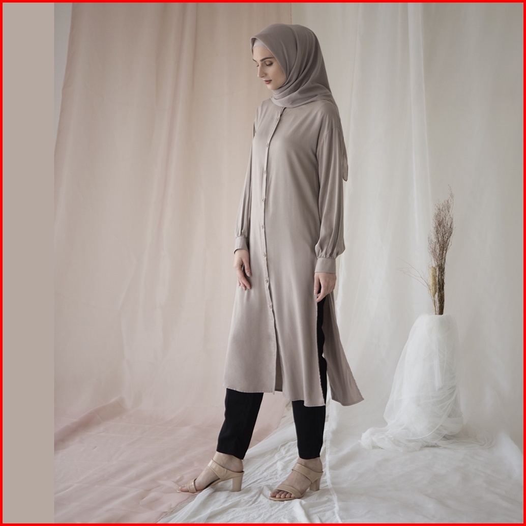 Tari By Aska Label - Tunik Rayon Kancing Lengan Panjang Warna Hitam Coksu Putih Biru Navy Lilac Coklat Biru Muda