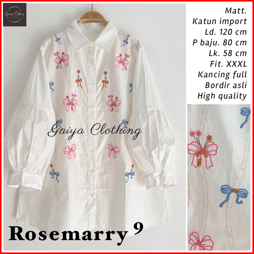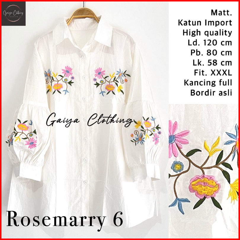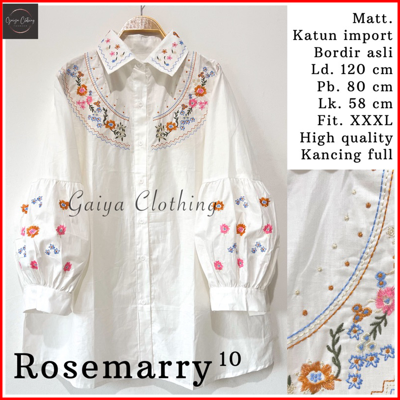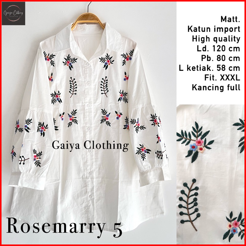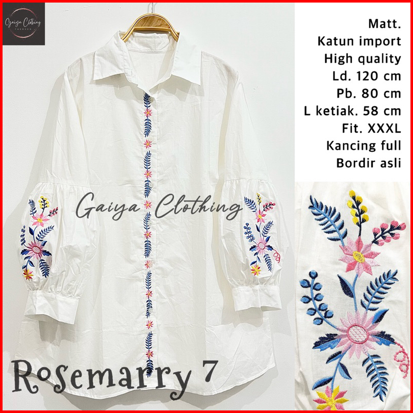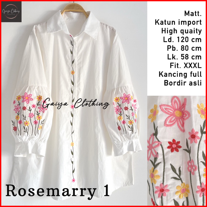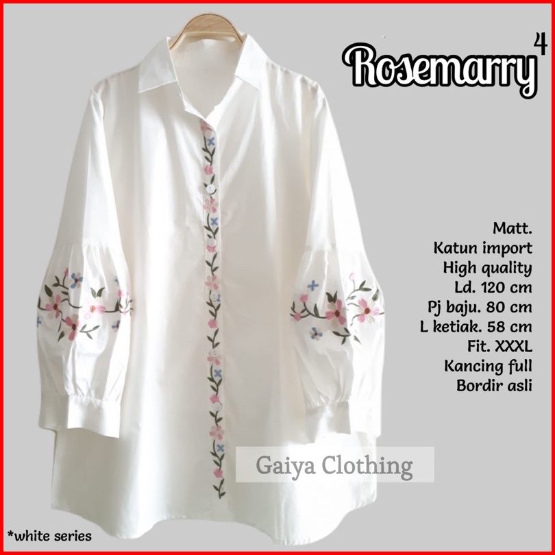 Tunik Kemeja Jumbo Putih Bordir Bunga - Rosemarry