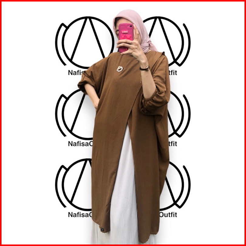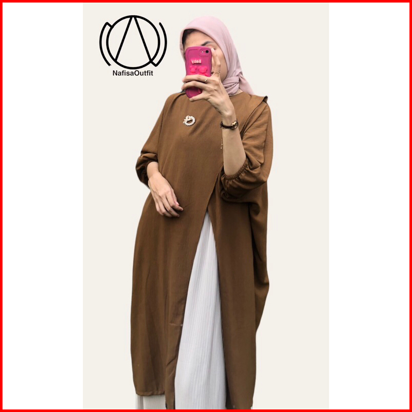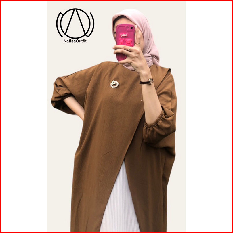Nafisaoutfit - Mecca Tunik Wanita Terbaru 2023 Crinkle Oversize Tangan 3 4 Busui