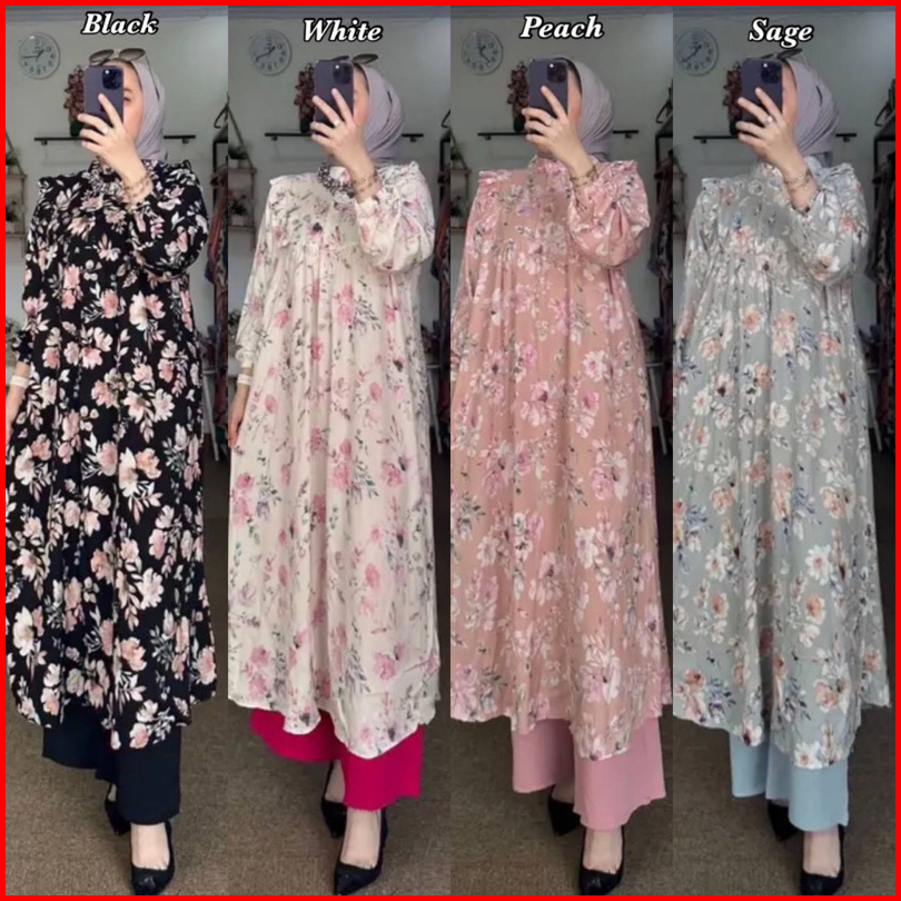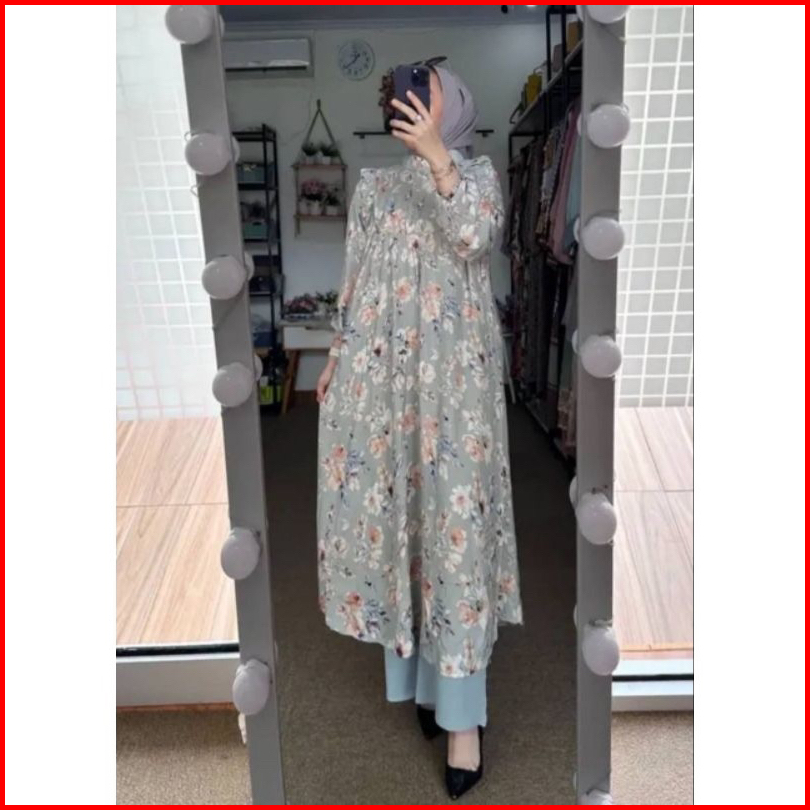 Setelan Tunik Rayon Kekinian Terbaru Denada One Set Tunik
