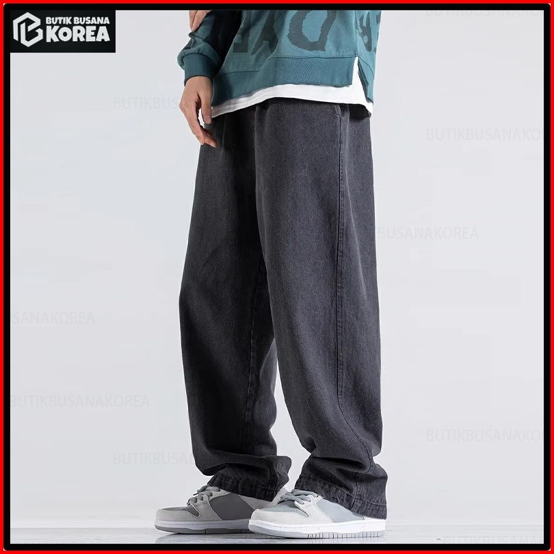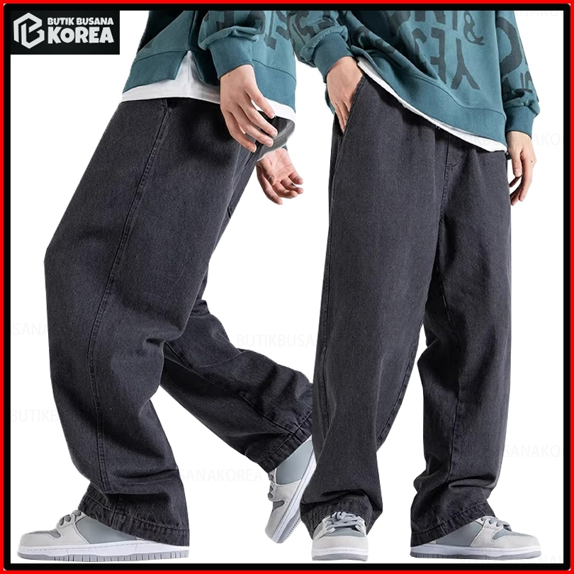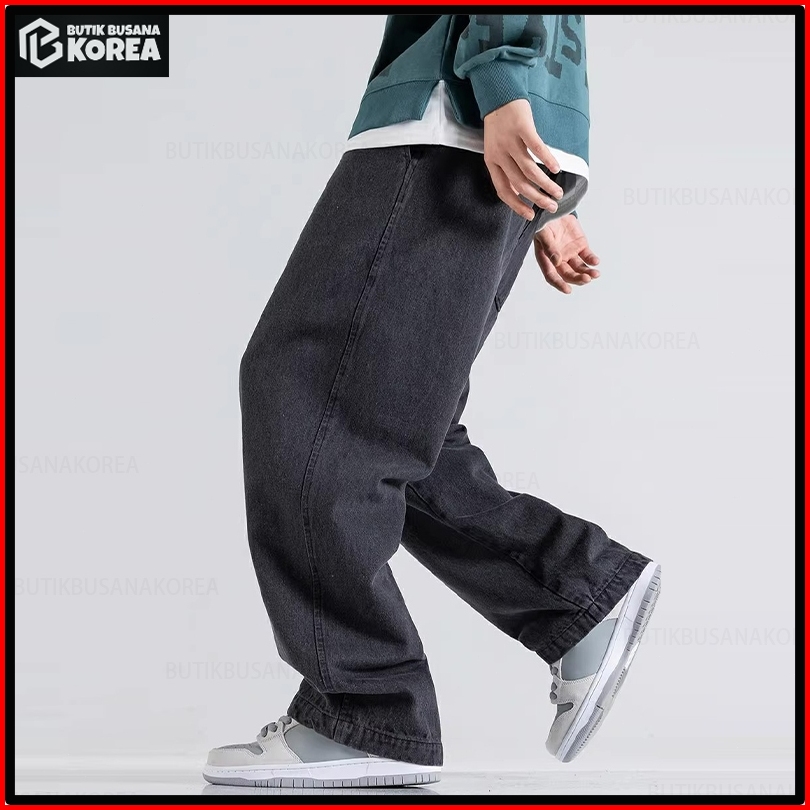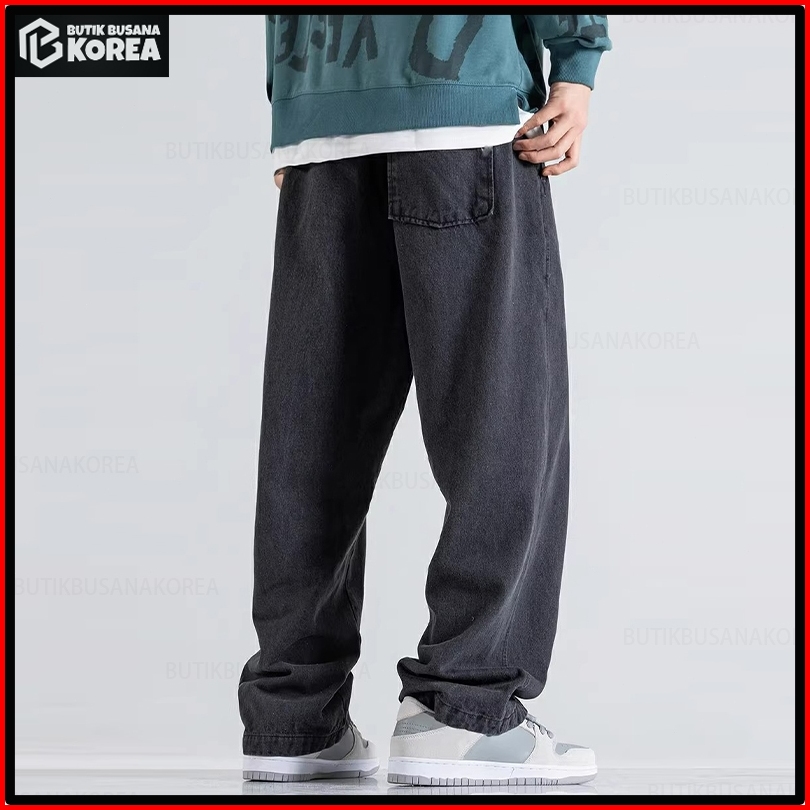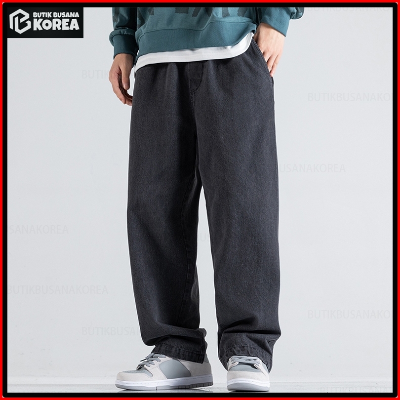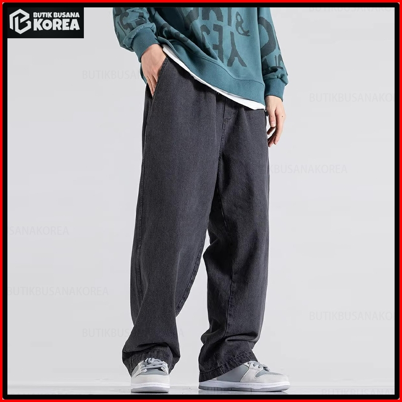 Celana Jeans Pria Hitam Abu Panjang Celana Denim Dewasa Style Celana Jeans Panjang Pria Loose Fitt Korean Style Bahan De
