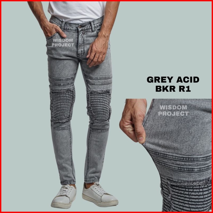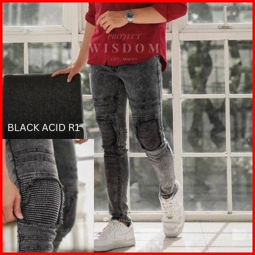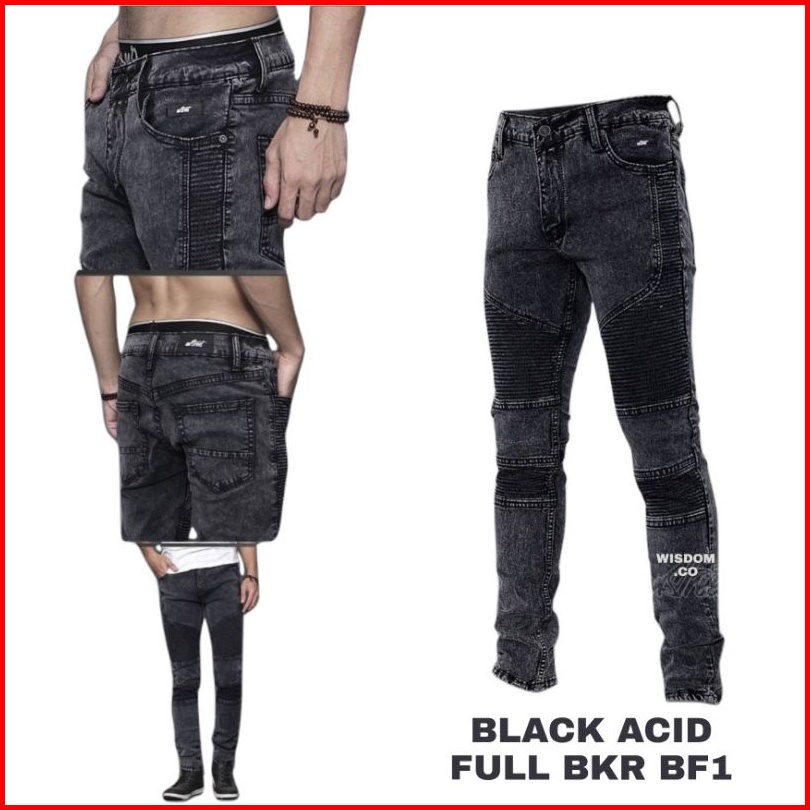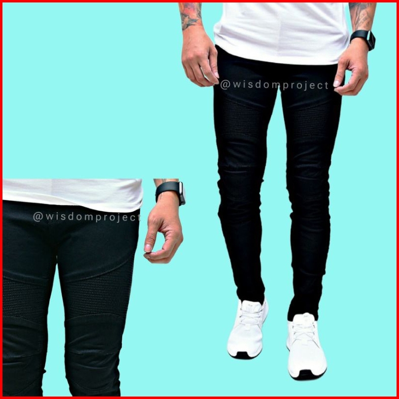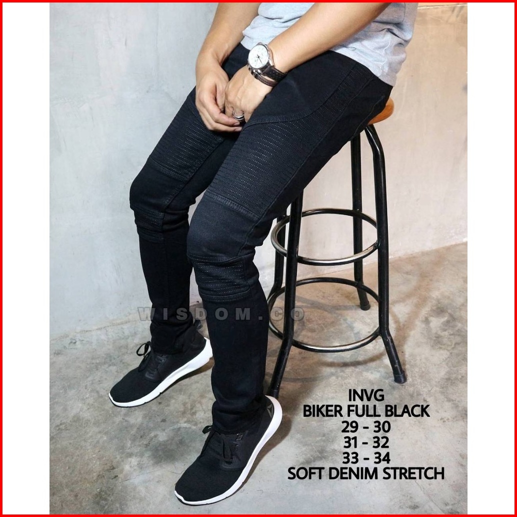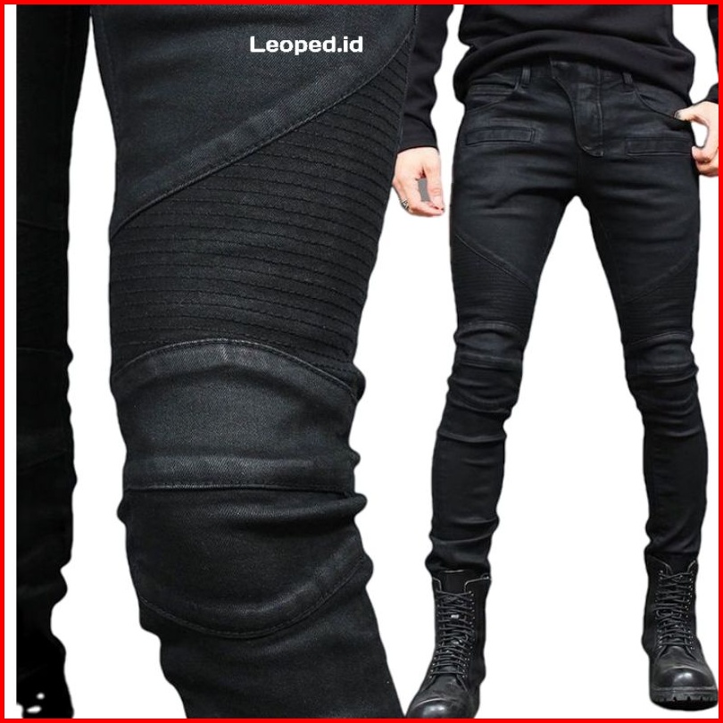 Leoped - Celana Jeans Bikers Skinny Ripped Pria Black Washed Terlaris - Mat Sotfjeans -ori