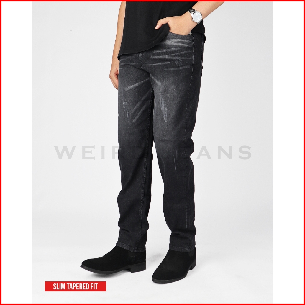 Weird Jeans - Dark Grey M88 - Celana Jeans Panjang Pria Polos Slimfit Polos Abu-abu Gelap