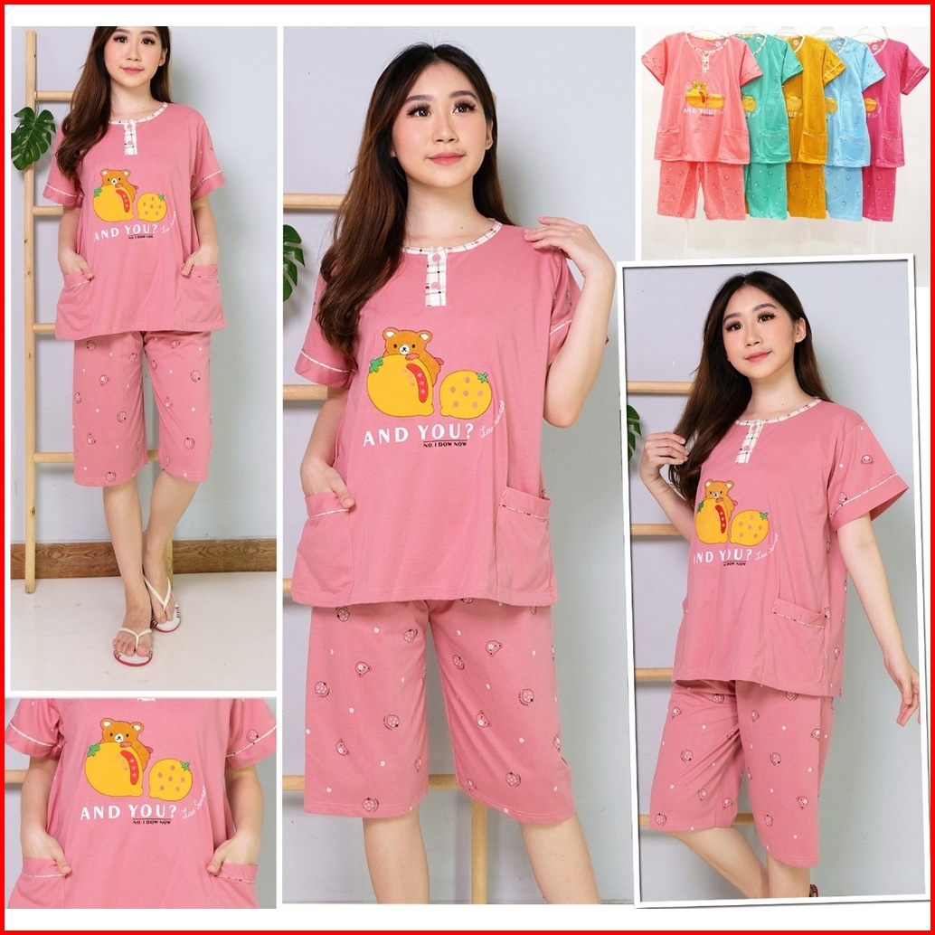 Rm007 Tessa 3 4 Jumbo Baju Tidur Wanita Dewasa Bahan Kaos Motif Terbaru Kualitas Premium Motif Terbaru
