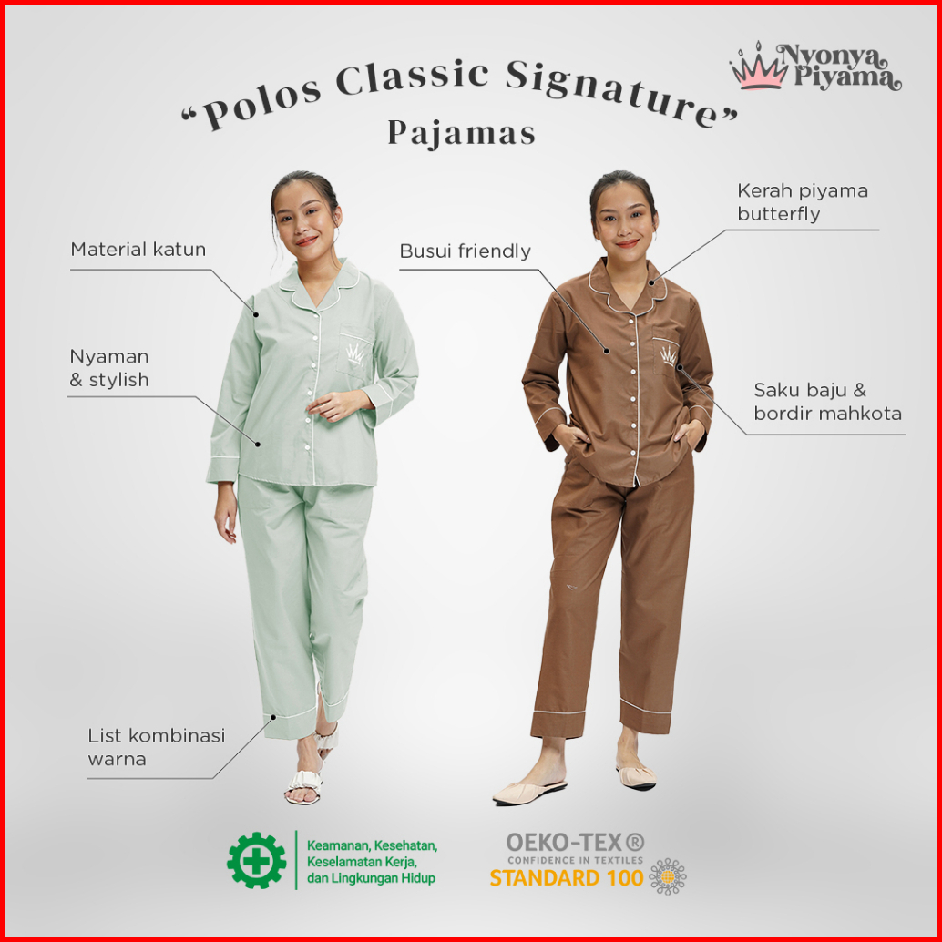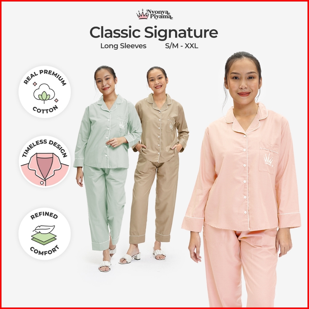 Best Seller Nyonya Piyama Katun Set Piyama Lengan Panjang Classic Signature
