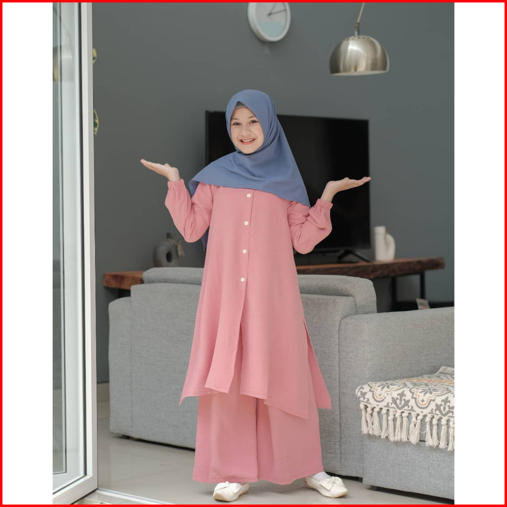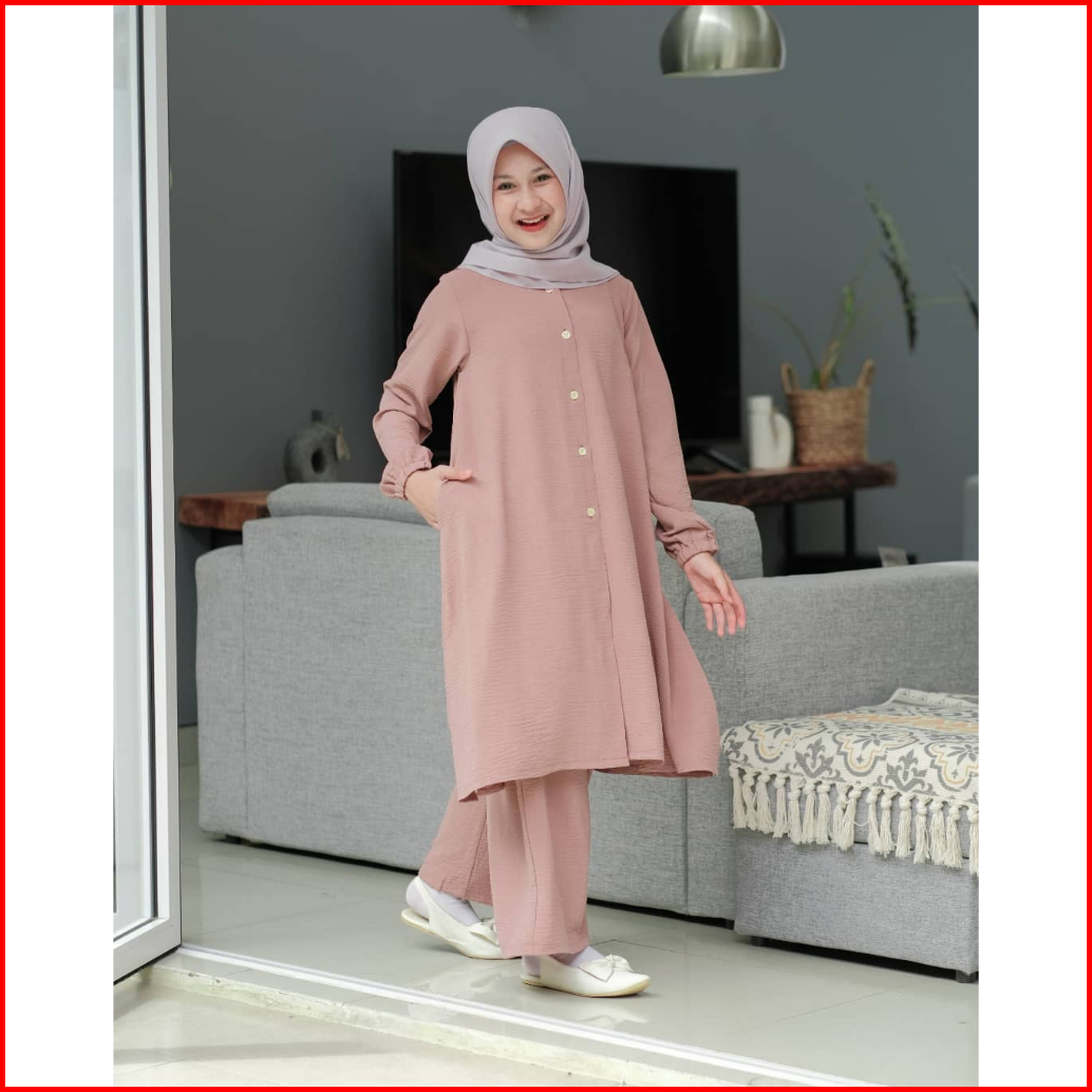 Kids Set Setelan Anak Perempuan Polos 7 8 9 10 11 12 13 14 15 Tahun Baju Muslim Anak Terbaru